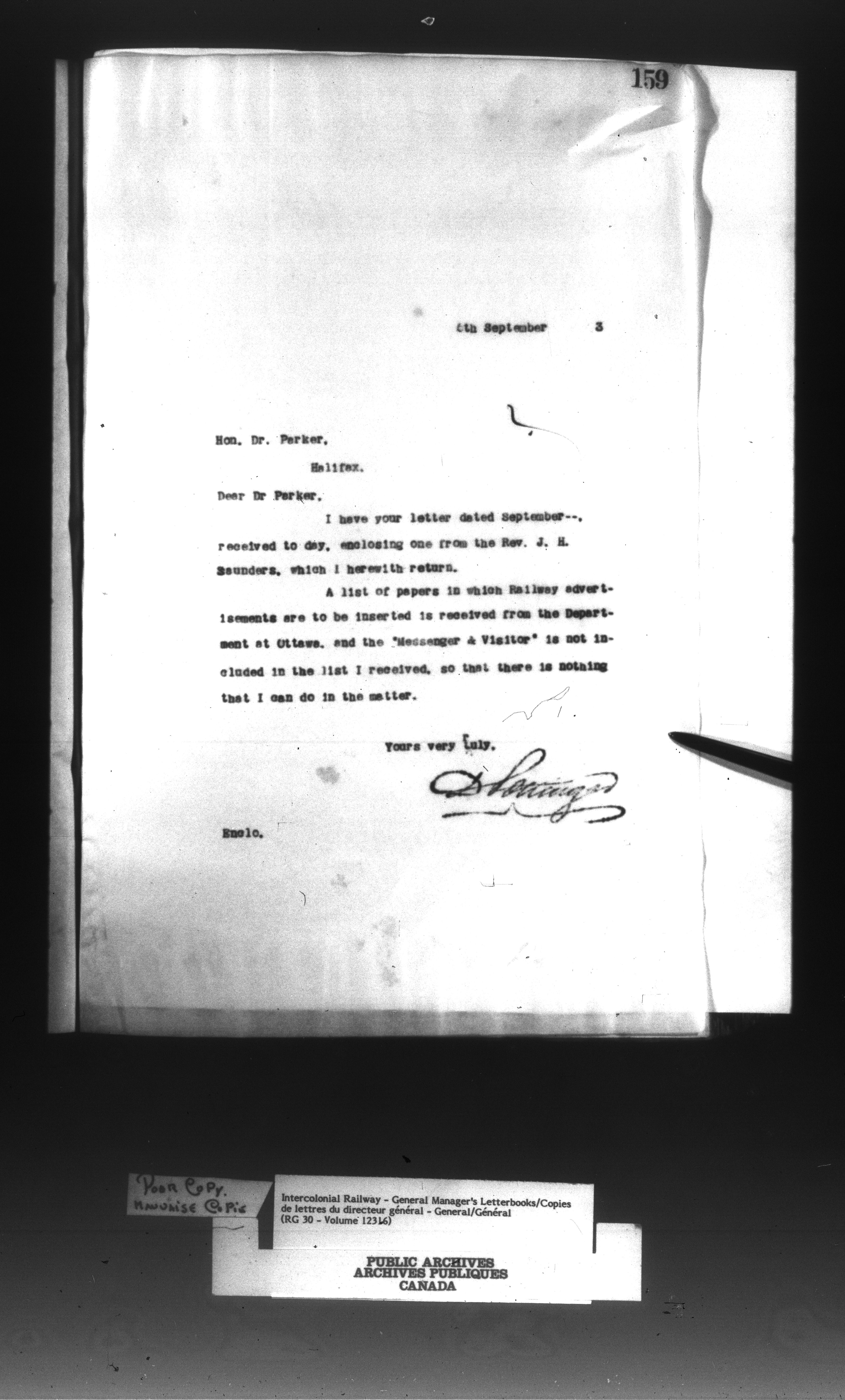 Canadian Government Railways : Office of the General Manager, Outward correspondence - 12999