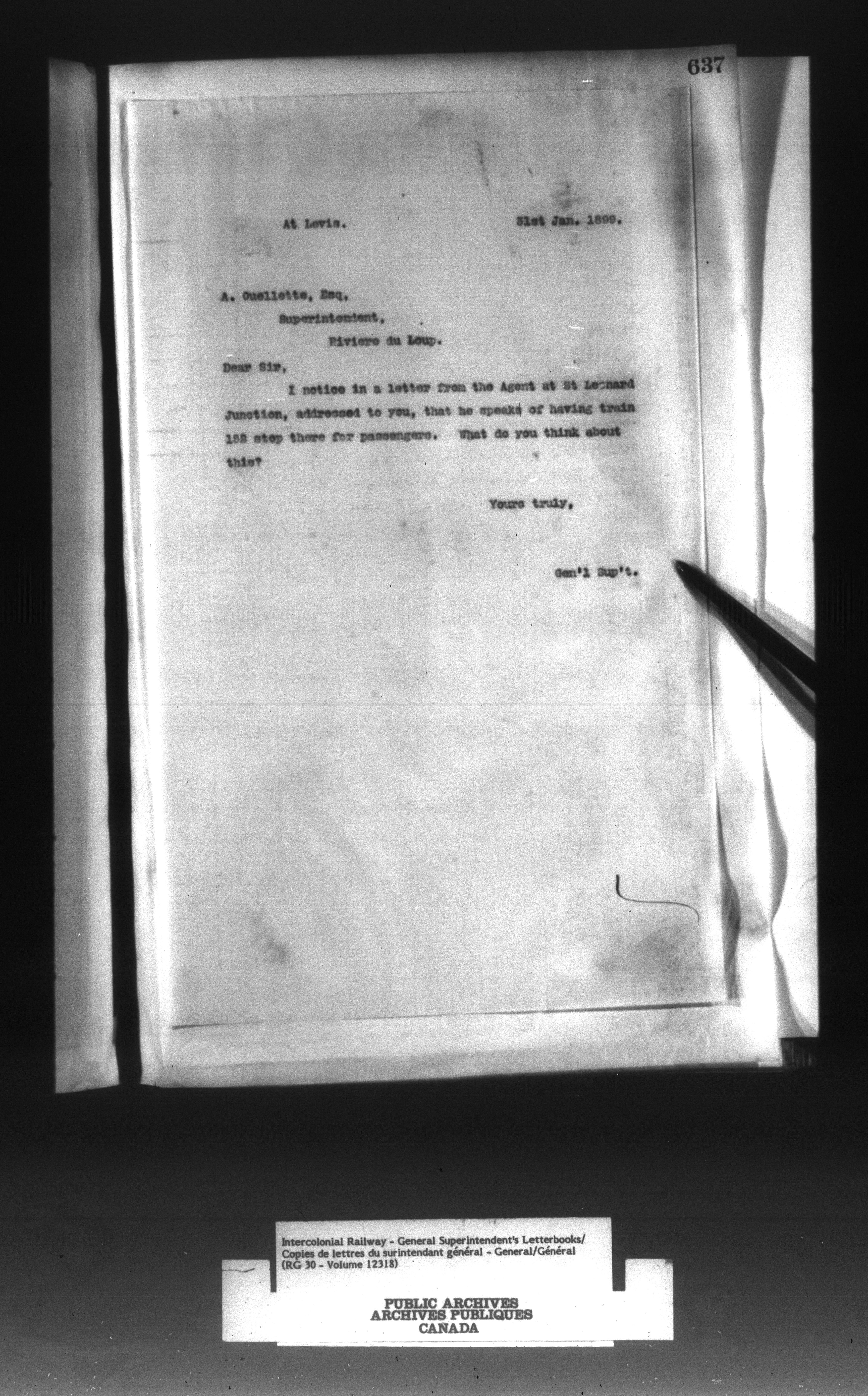 Canadian Government Railways : Office of the General Superintendent correspondence : C-13002