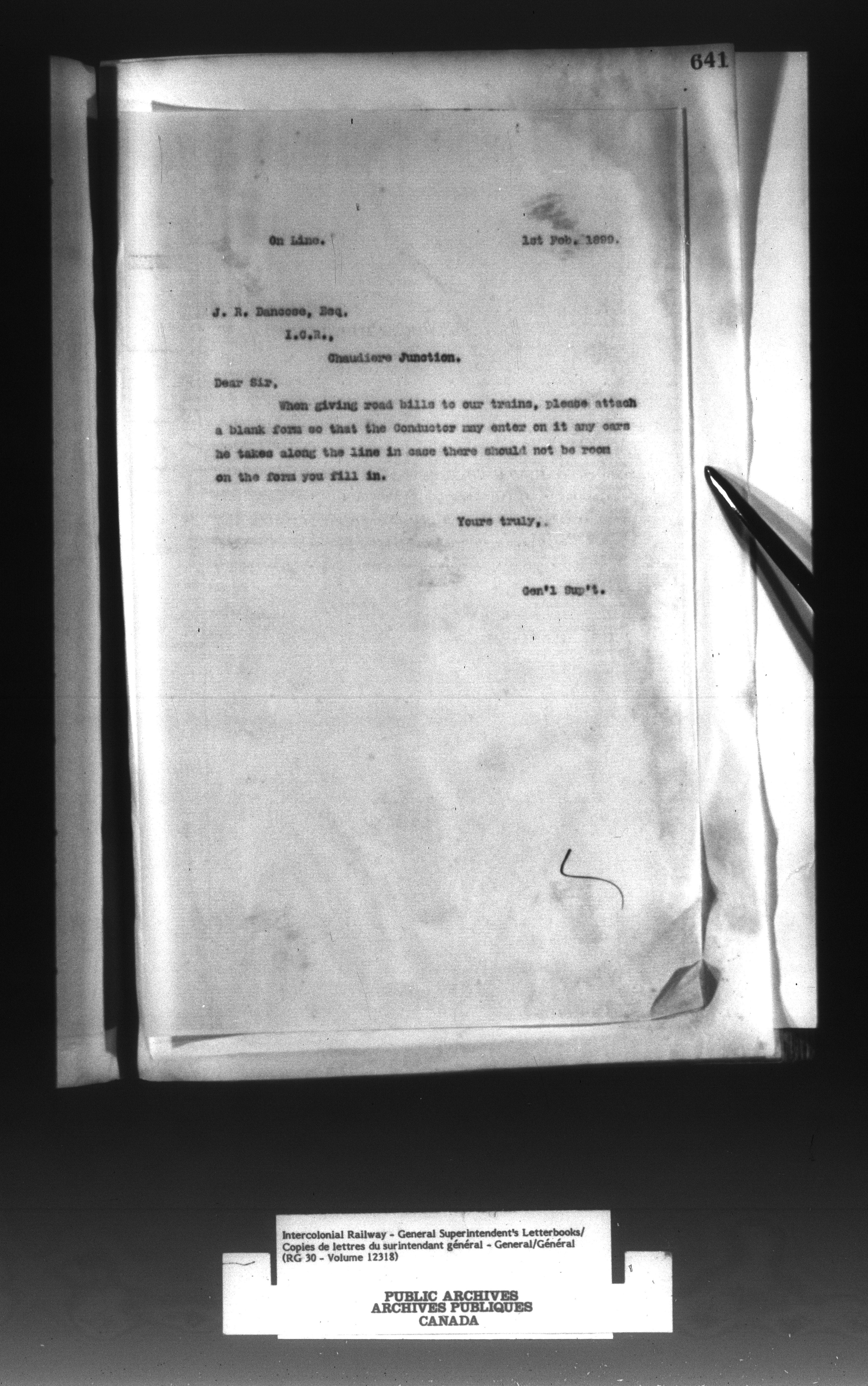 Canadian Government Railways : Office of the General Superintendent correspondence : C-13002