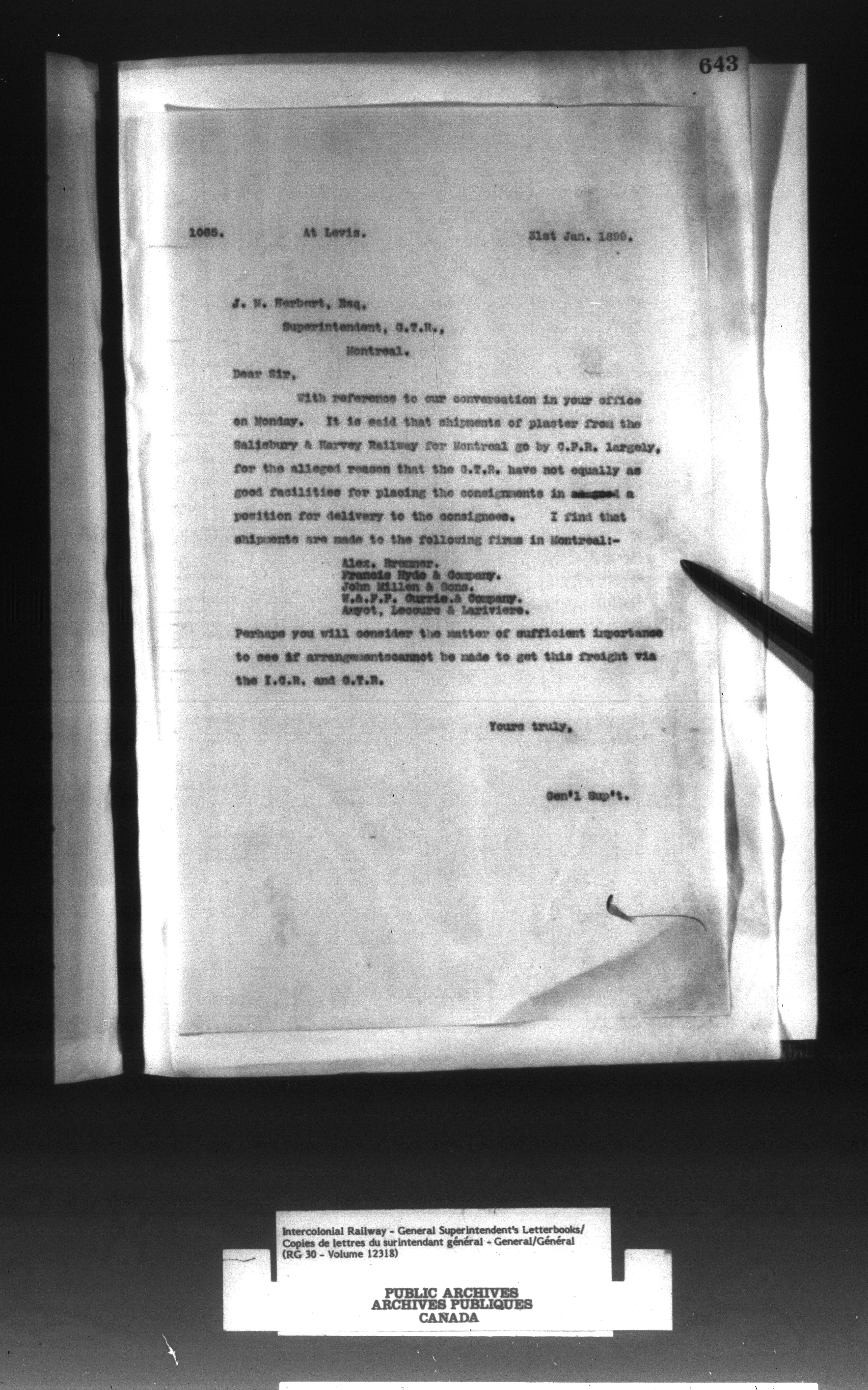 Canadian Government Railways : Office of the General Superintendent correspondence : C-13002