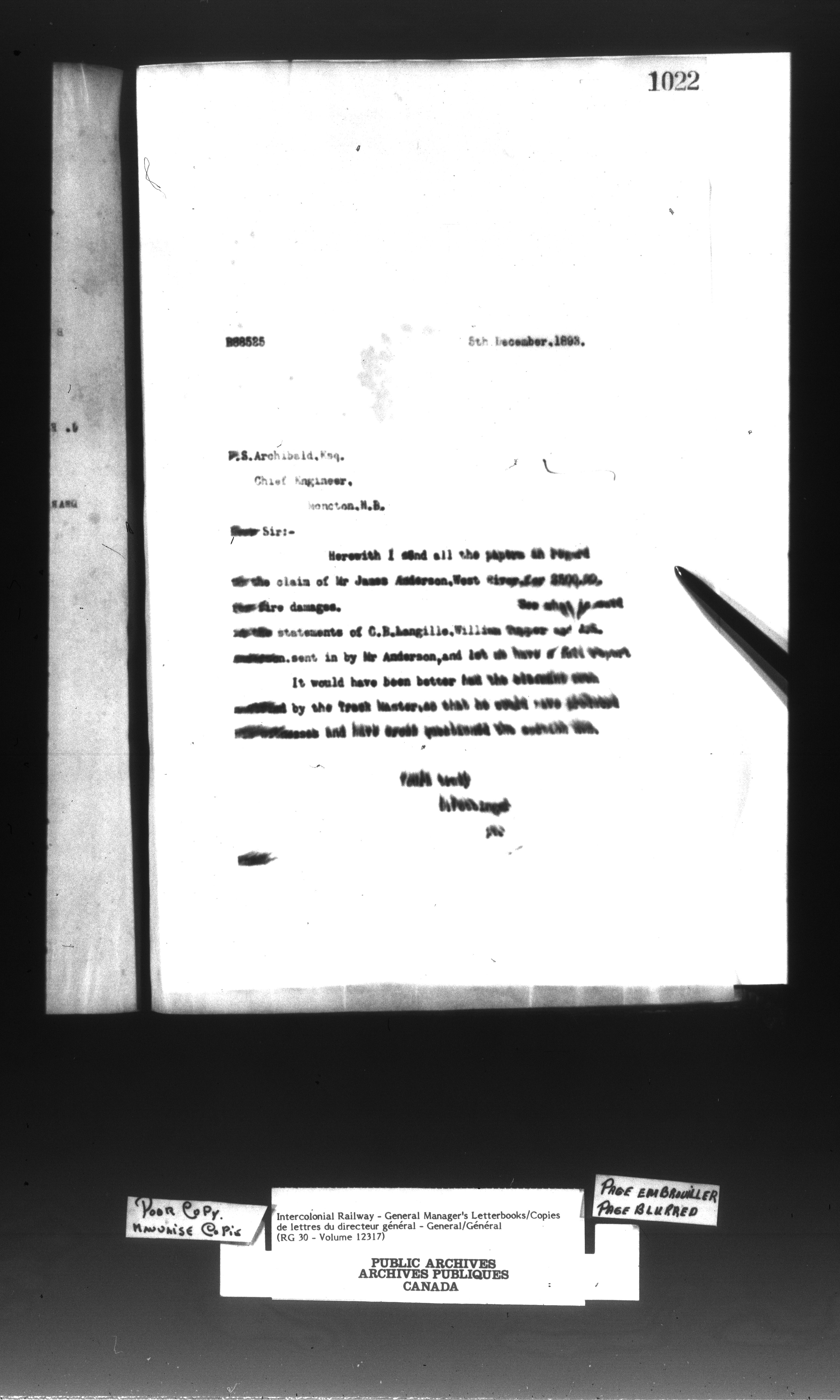 Canadian Government Railways : Office of the General Superintendent correspondence : C-13002