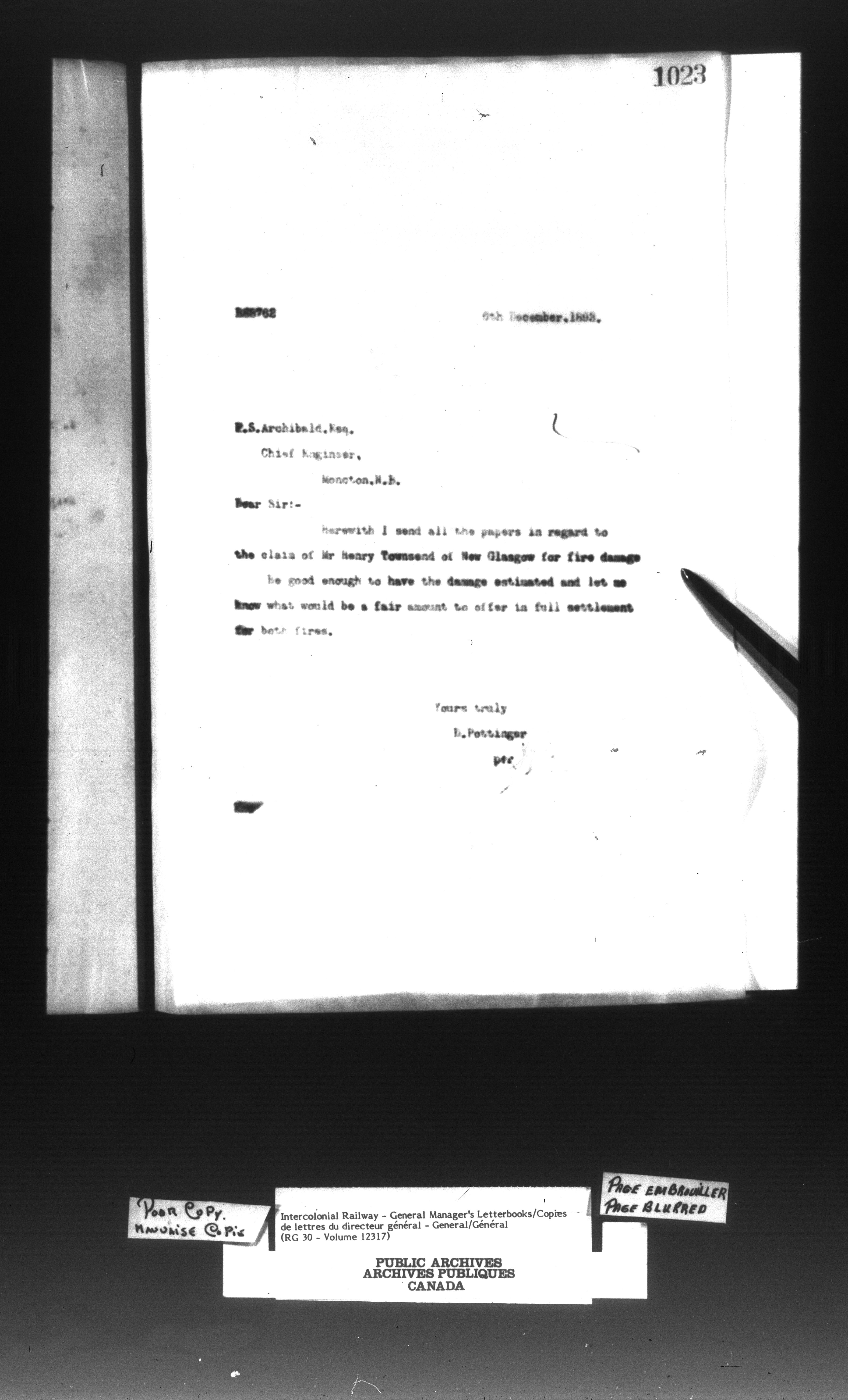 Canadian Government Railways : Office of the General Superintendent correspondence : C-13002