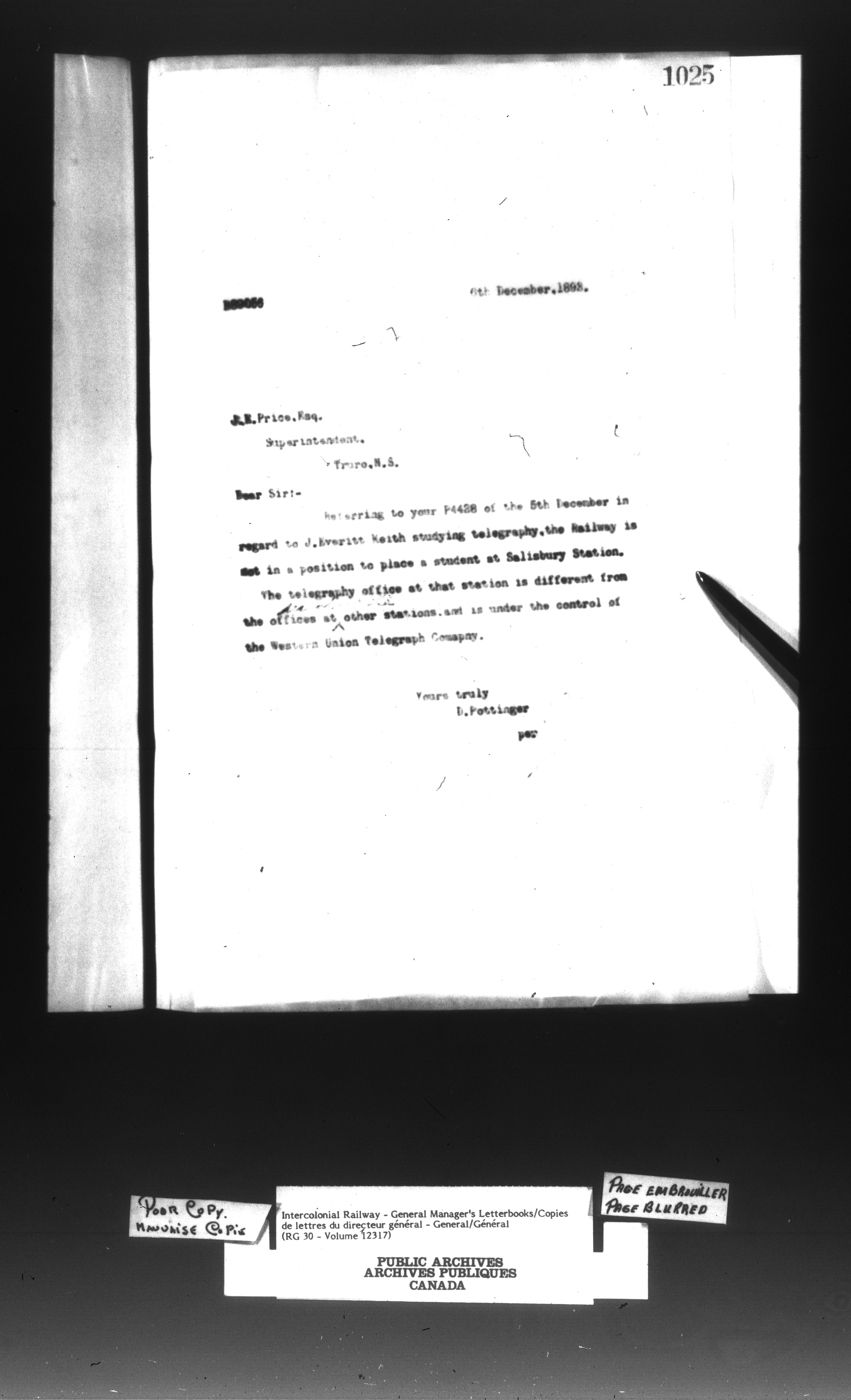 Canadian Government Railways : Office of the General Superintendent correspondence : C-13002
