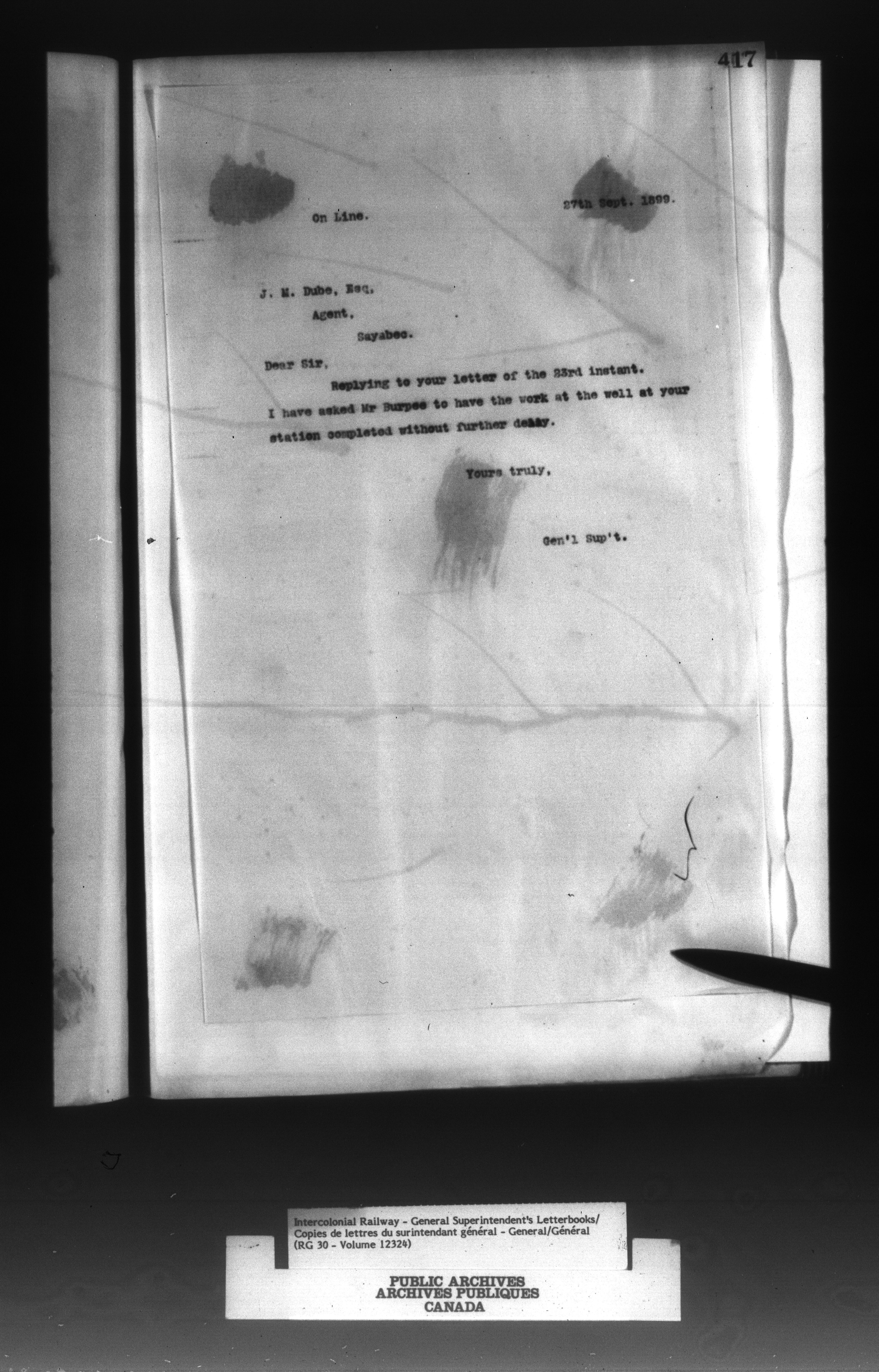 Canadian Government Railways : Office of the General Superintendent - 13009