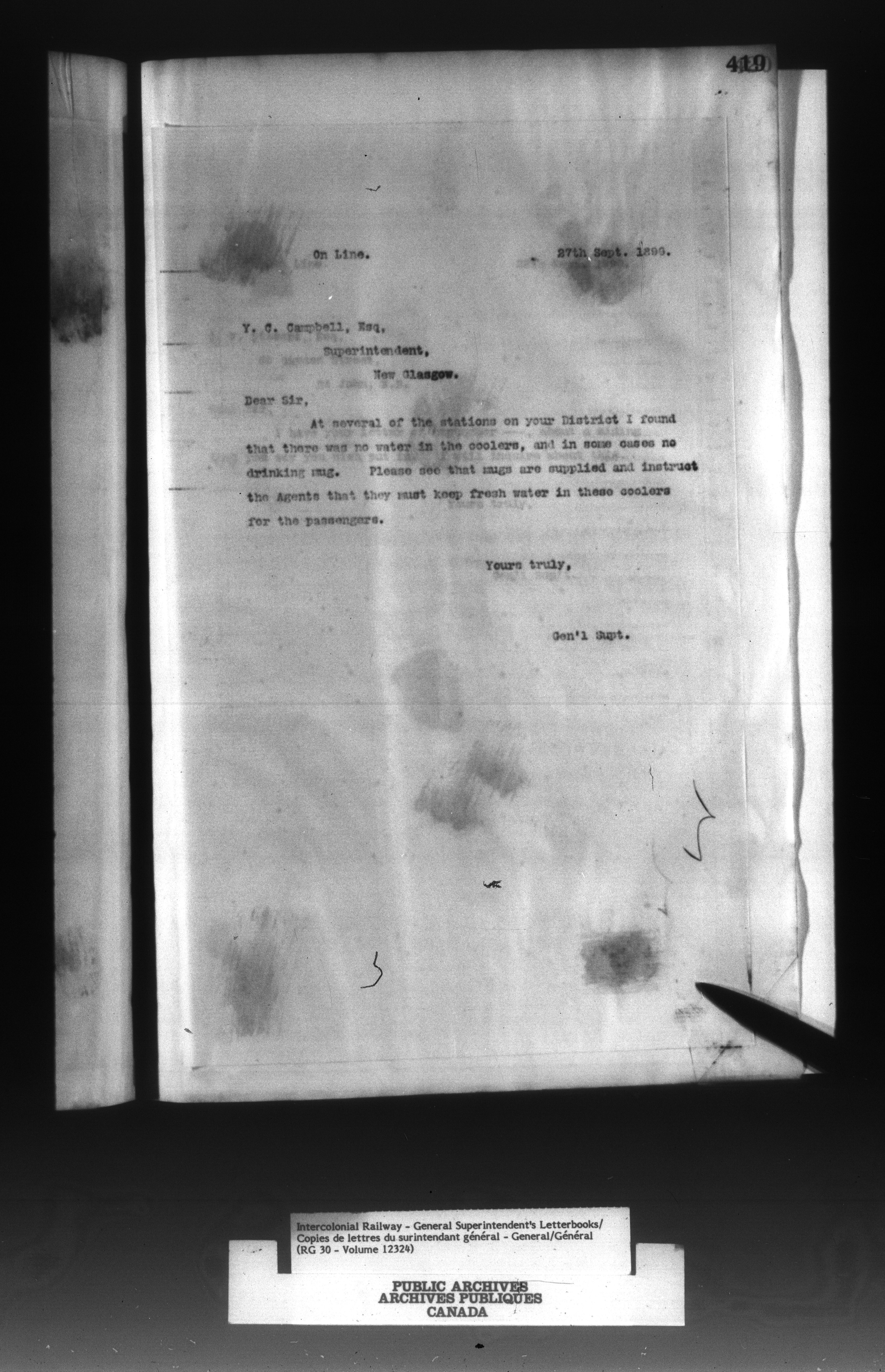 Canadian Government Railways : Office of the General Superintendent - 13009