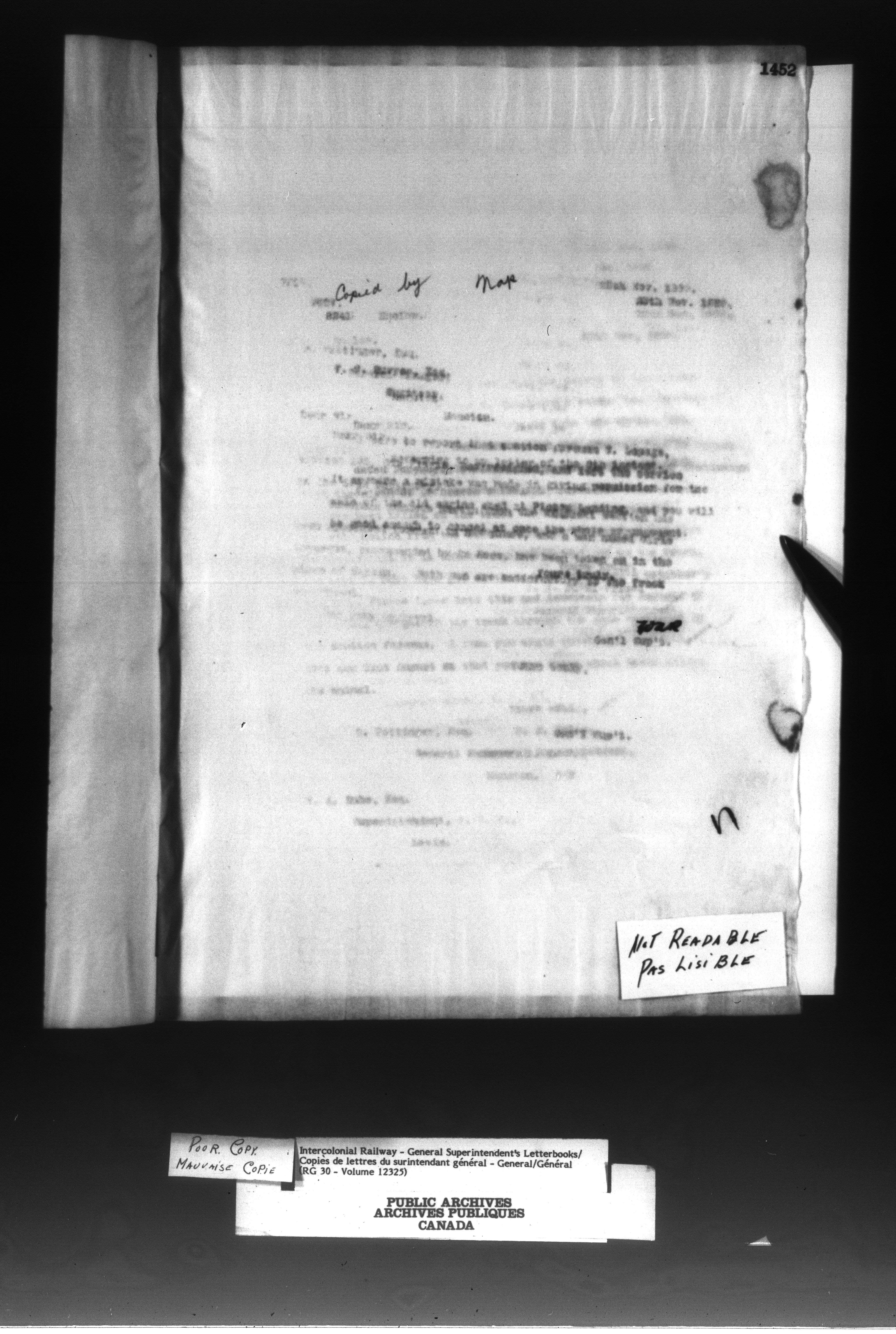 Canadian Government Railways : Office of the General Superintendent - 13012