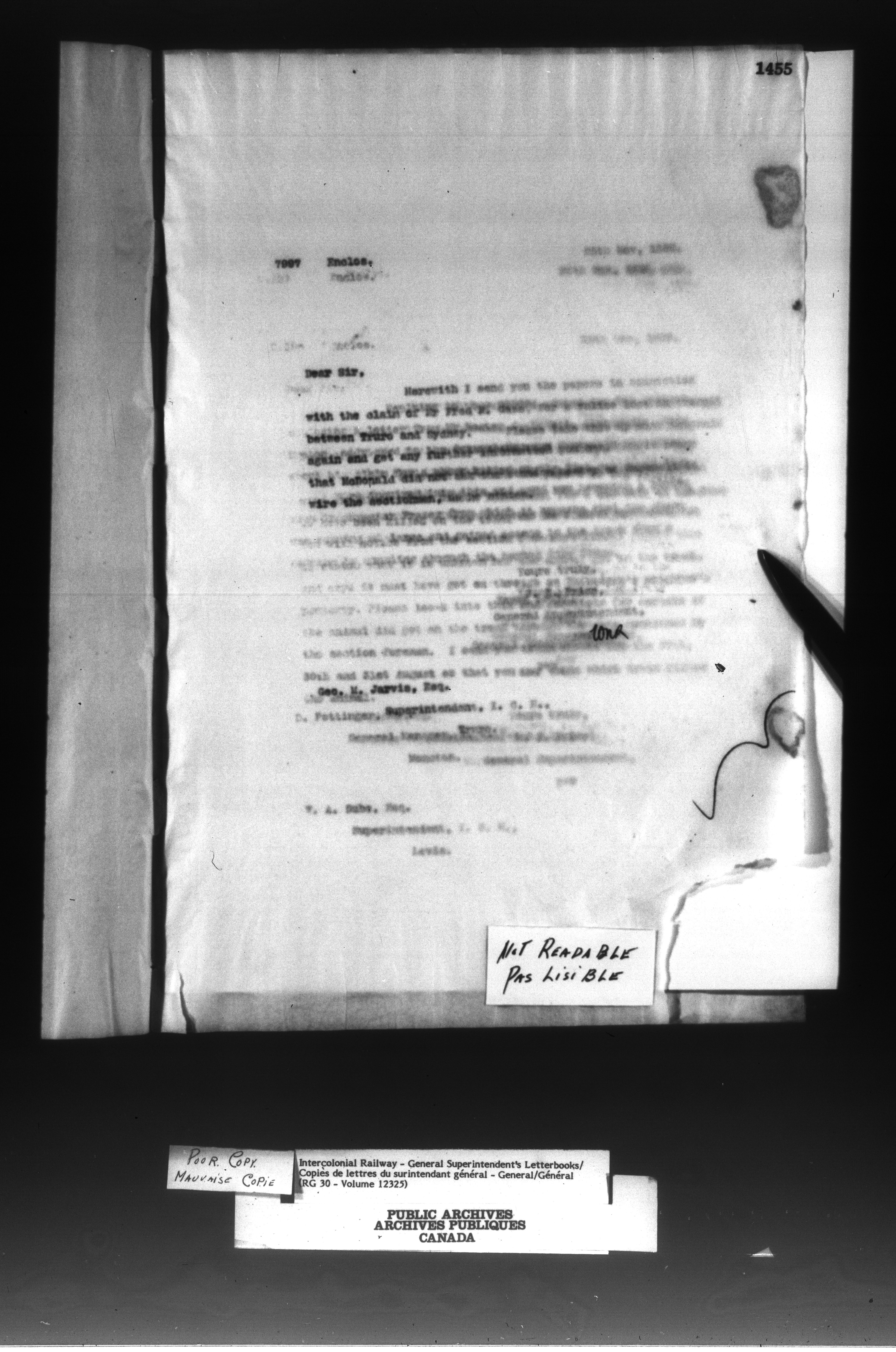 Canadian Government Railways : Office of the General Superintendent correspondence : C-13012