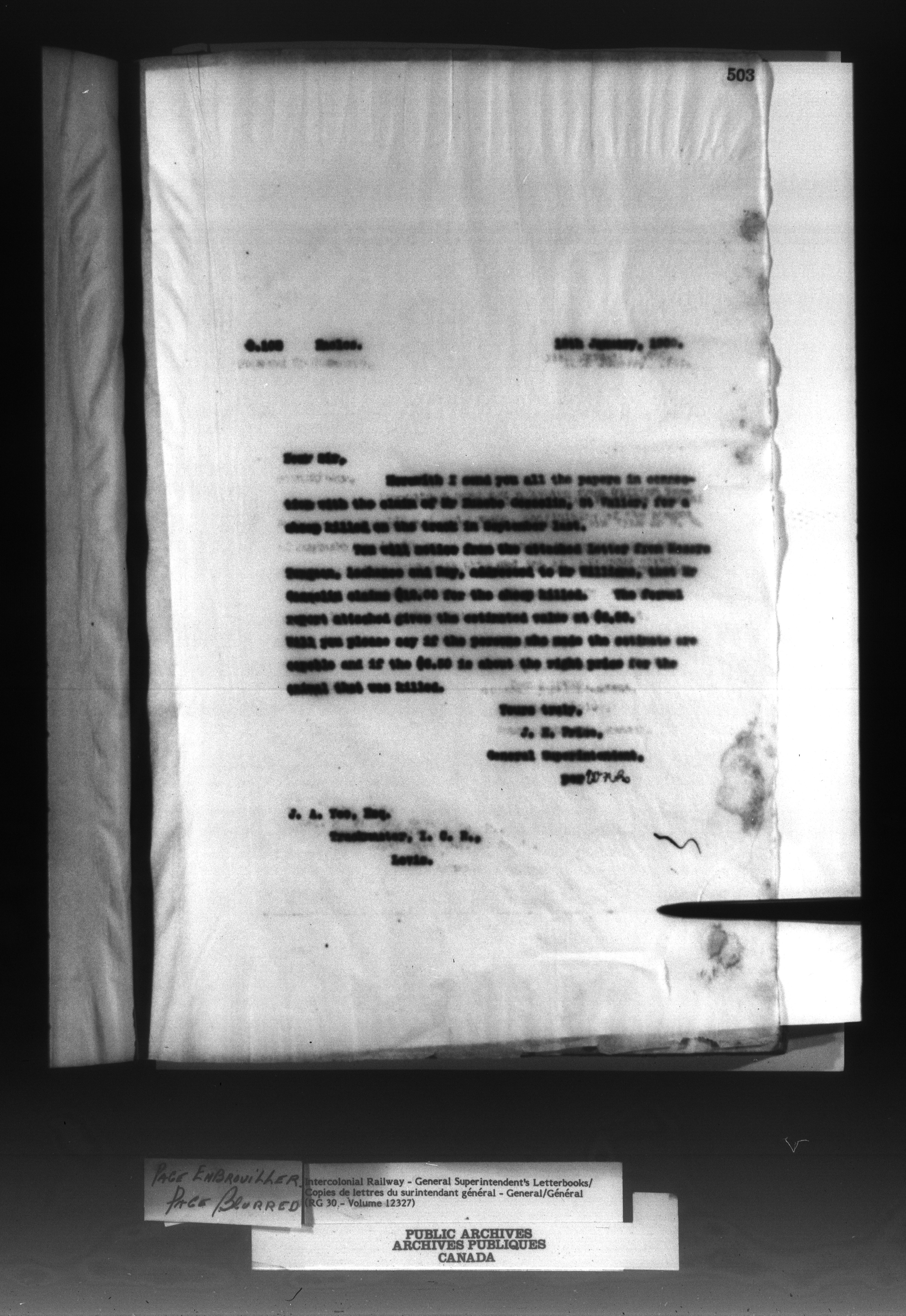Canadian Government Railways : Office of the General Superintendent correspondence : C-13013