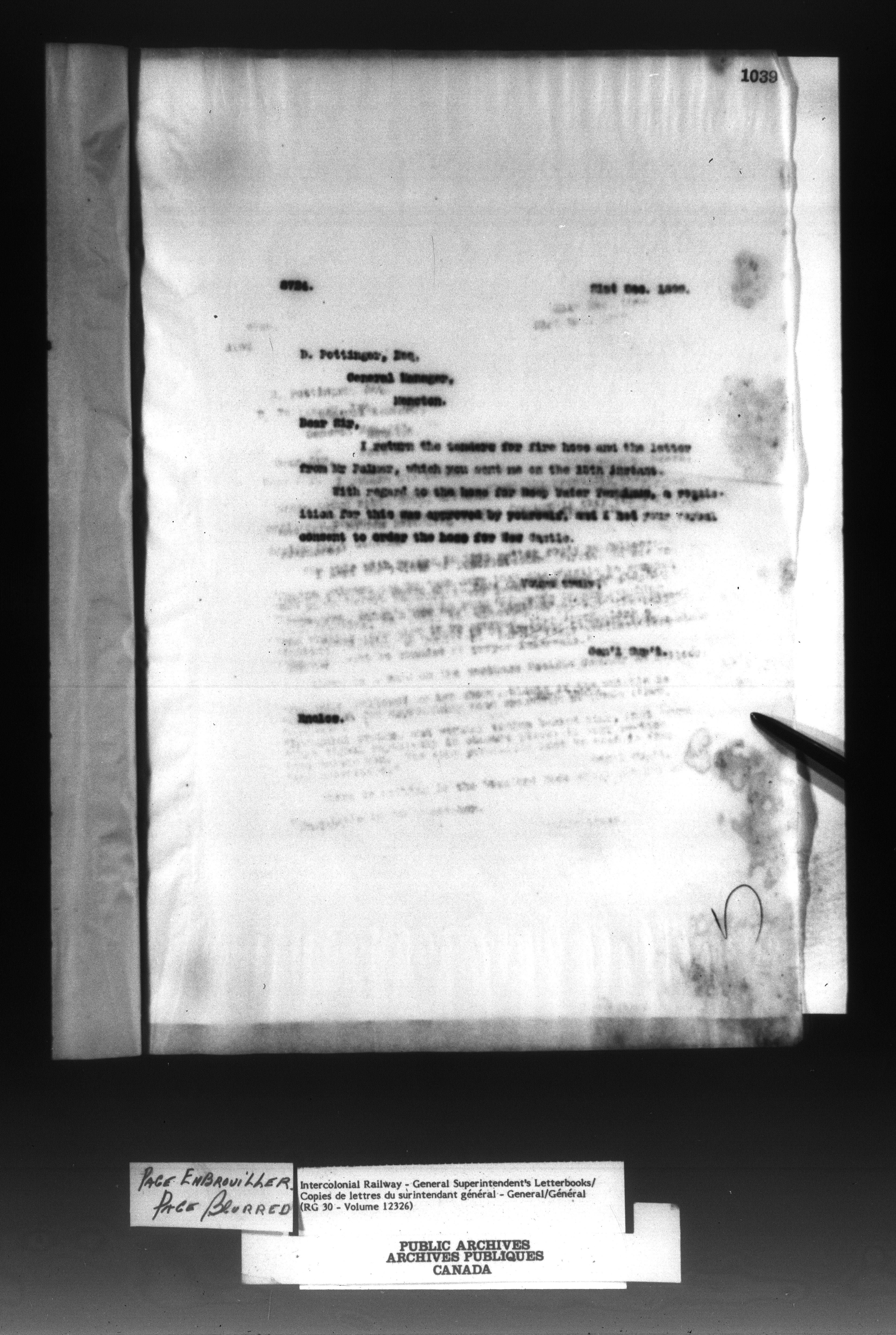 Canadian Government Railways : Office of the General Superintendent correspondence : C-13013
