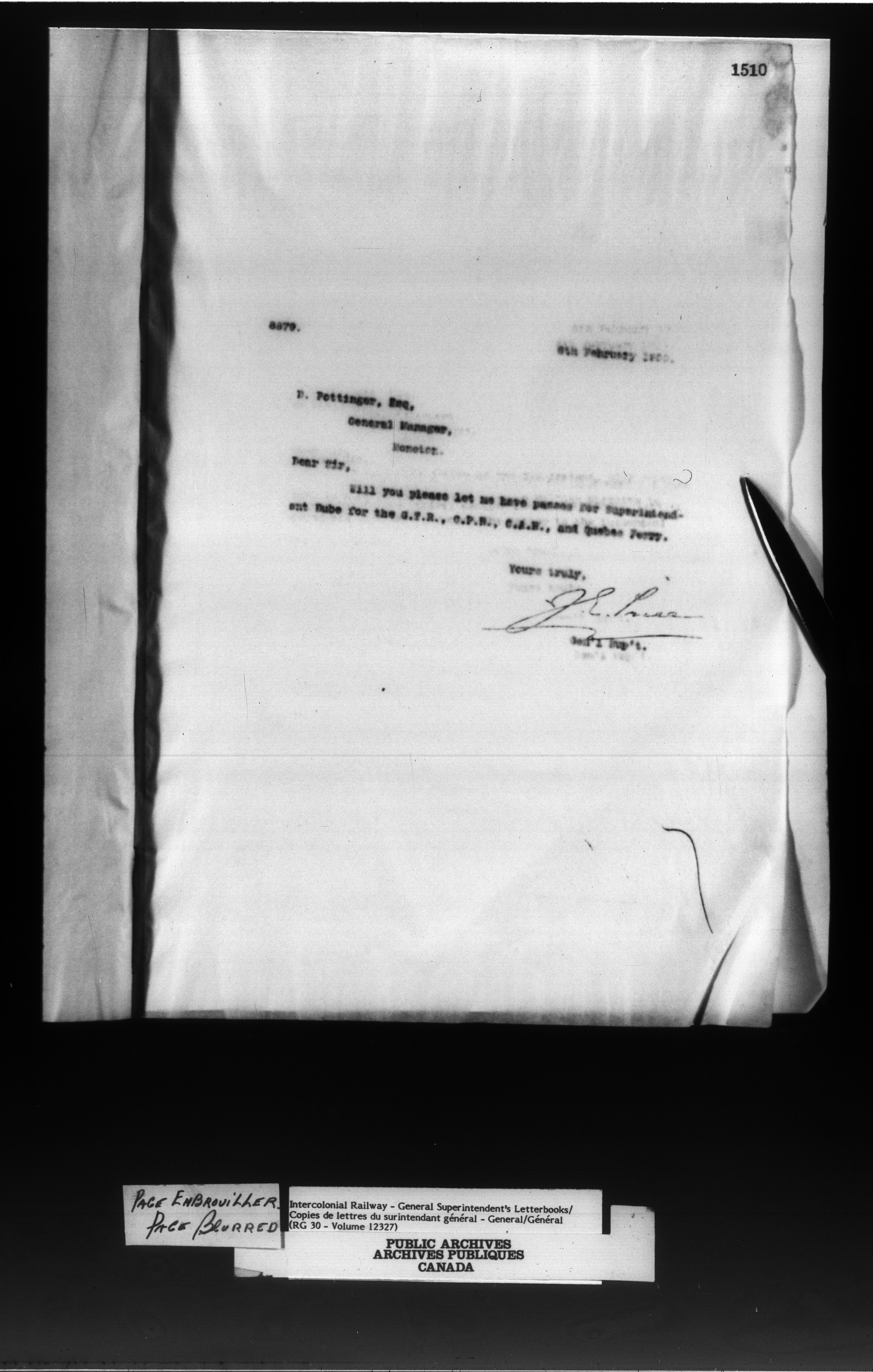 Canadian Government Railways : Office of the General Superintendent - 13015