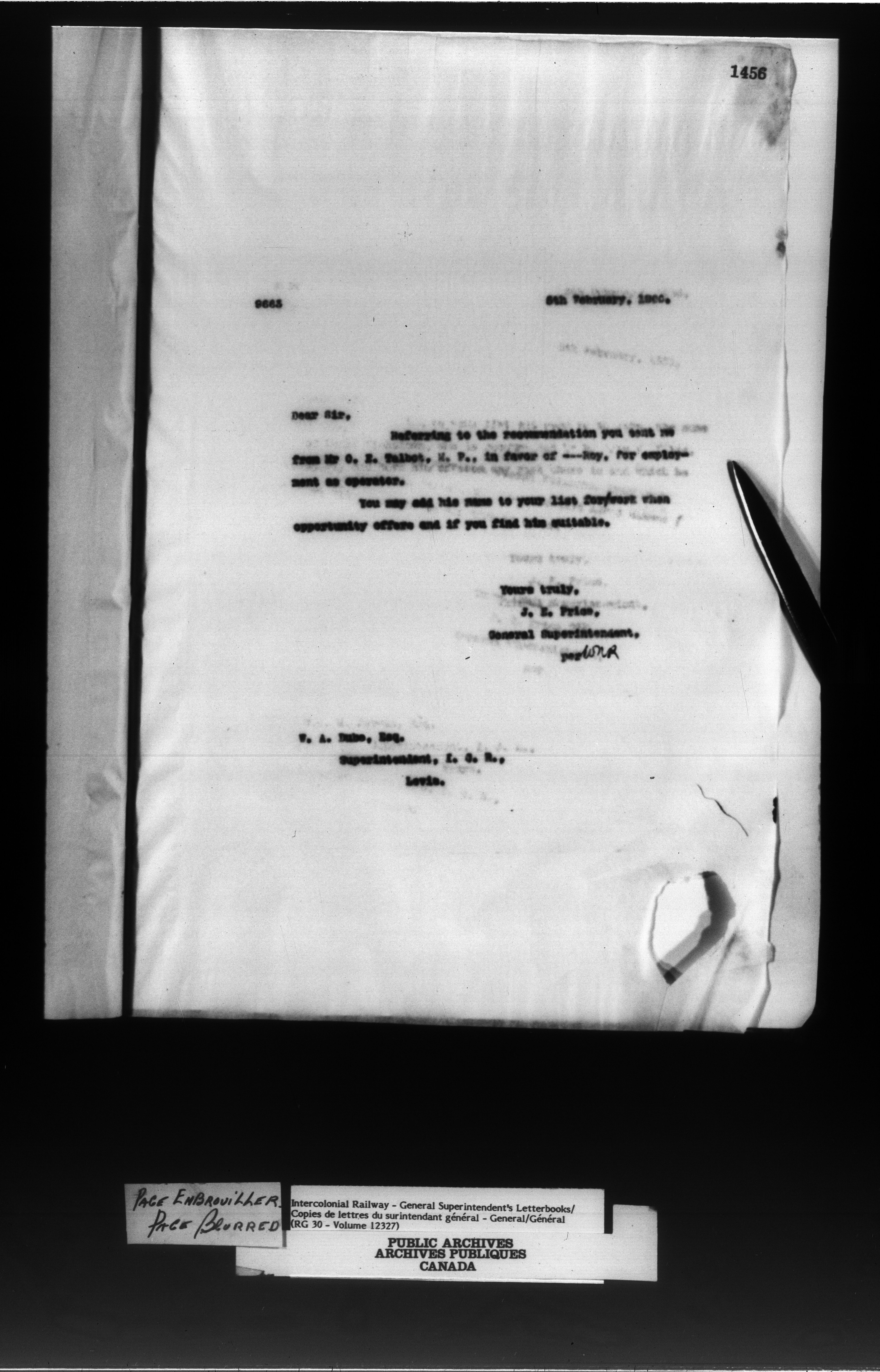 Canadian Government Railways : Office of the General Superintendent - 13015