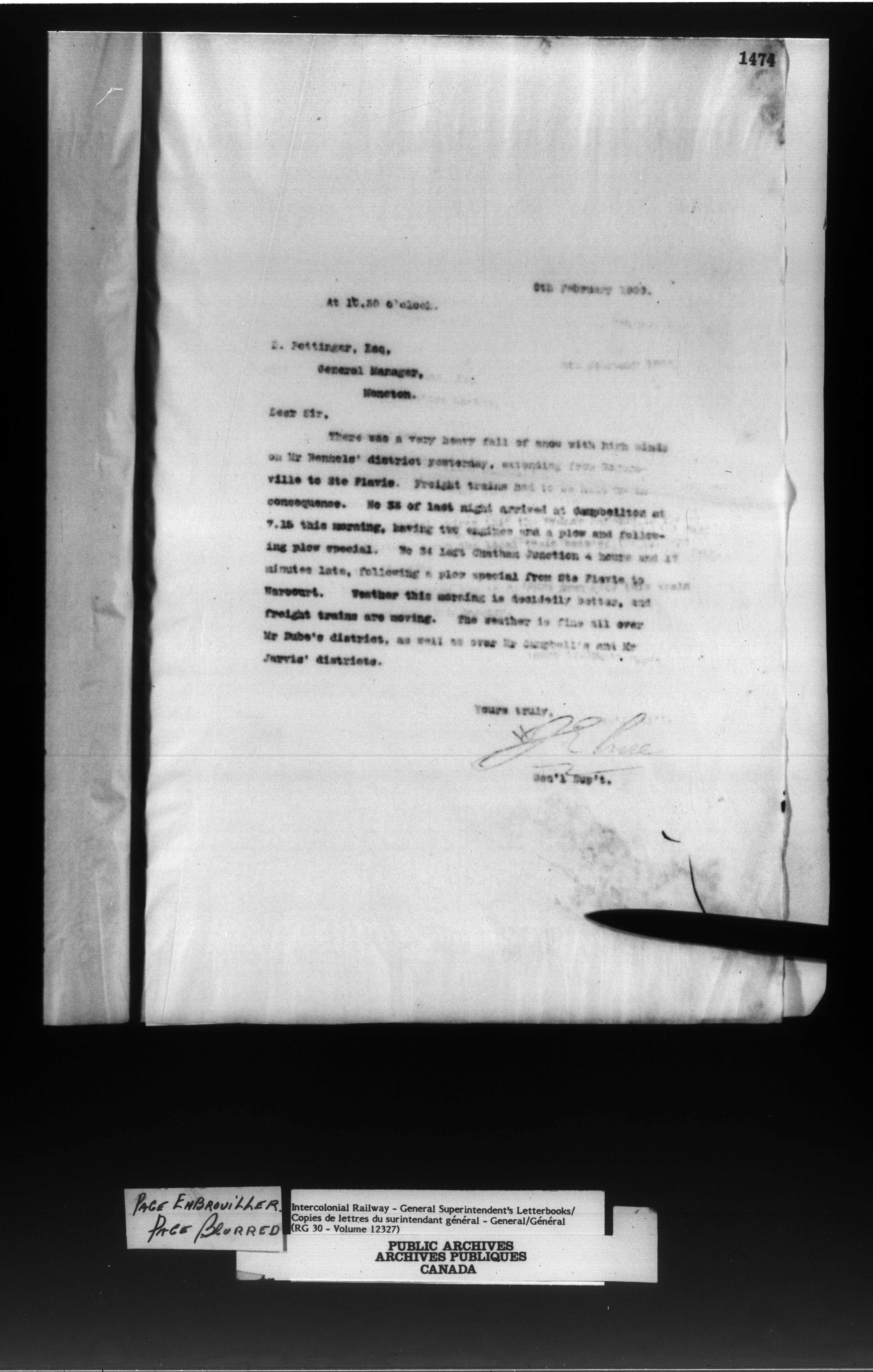 Canadian Government Railways : Office of the General Superintendent - 13015