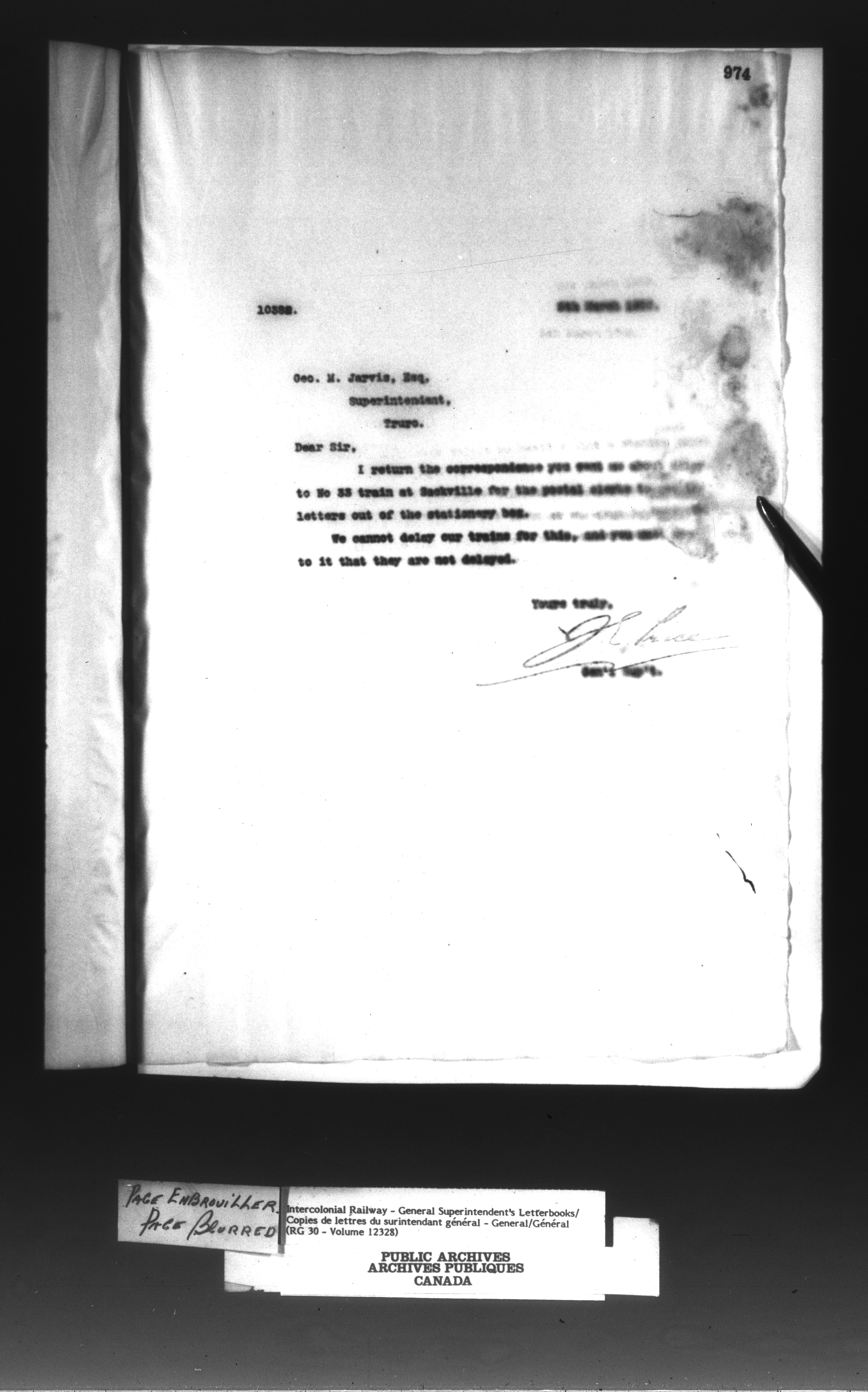 Canadian Government Railways : Office of the General Superintendent - 13016