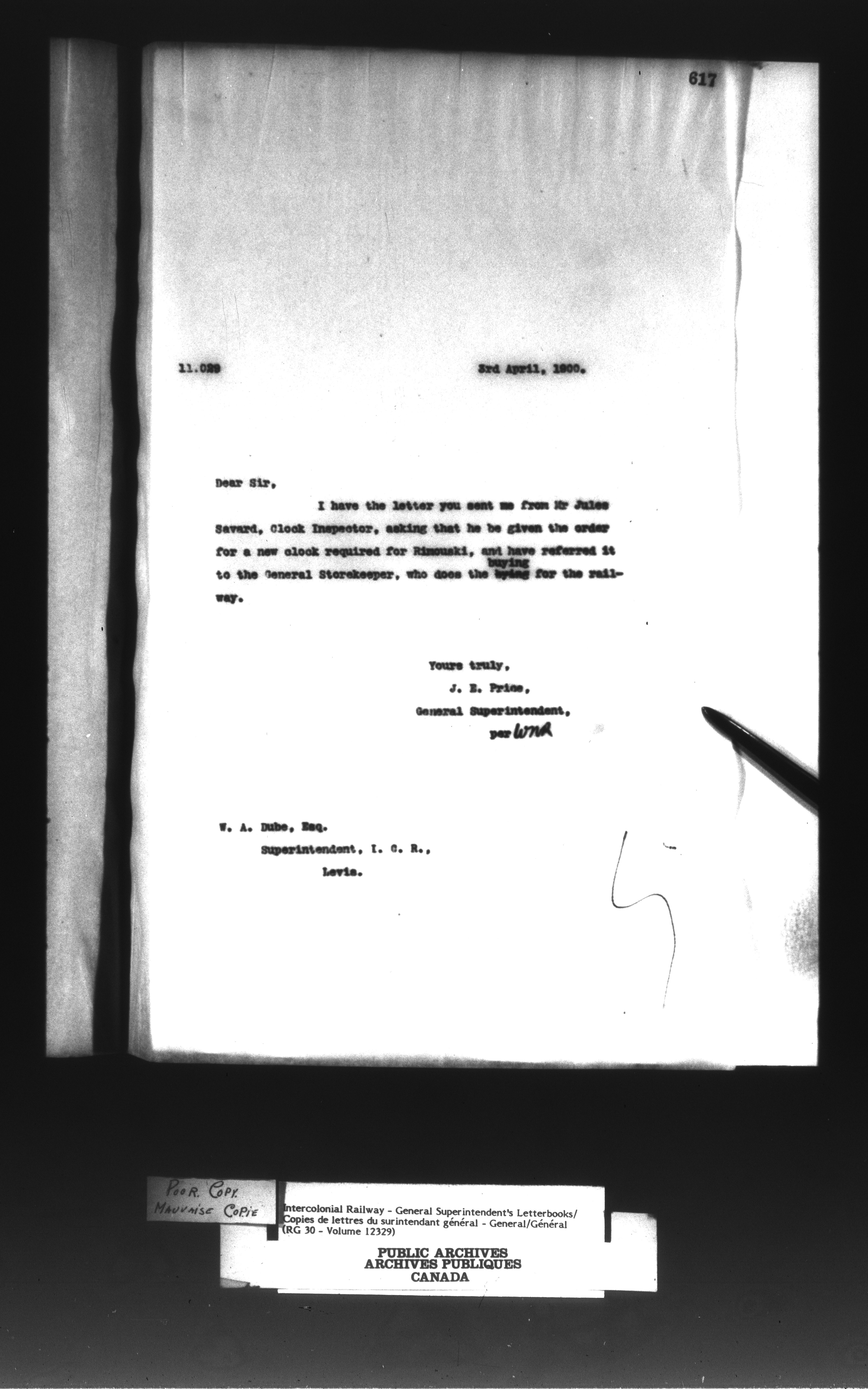 Canadian Government Railways : Office of the General Superintendent - 13017