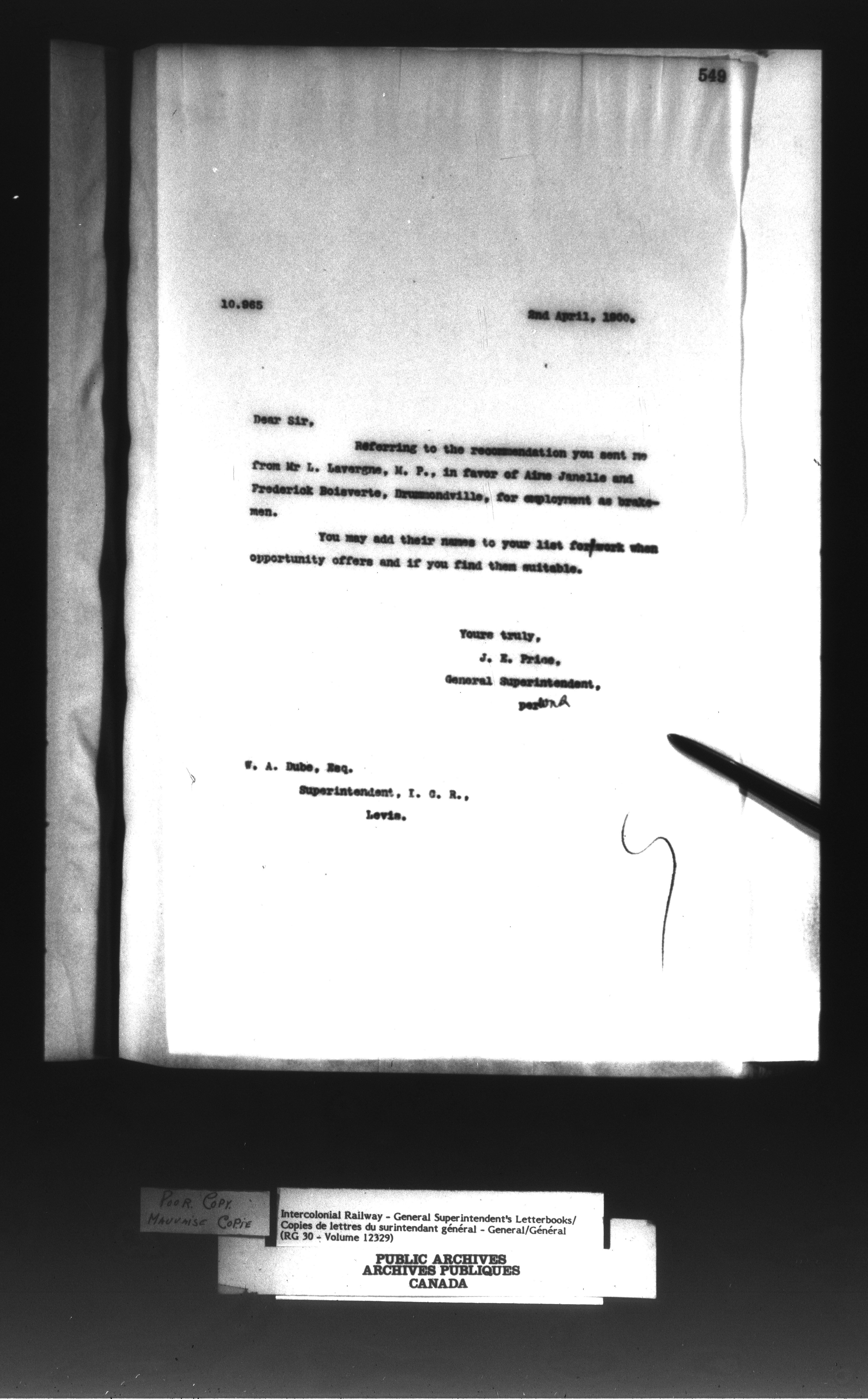 Canadian Government Railways : Office of the General Superintendent - 13017