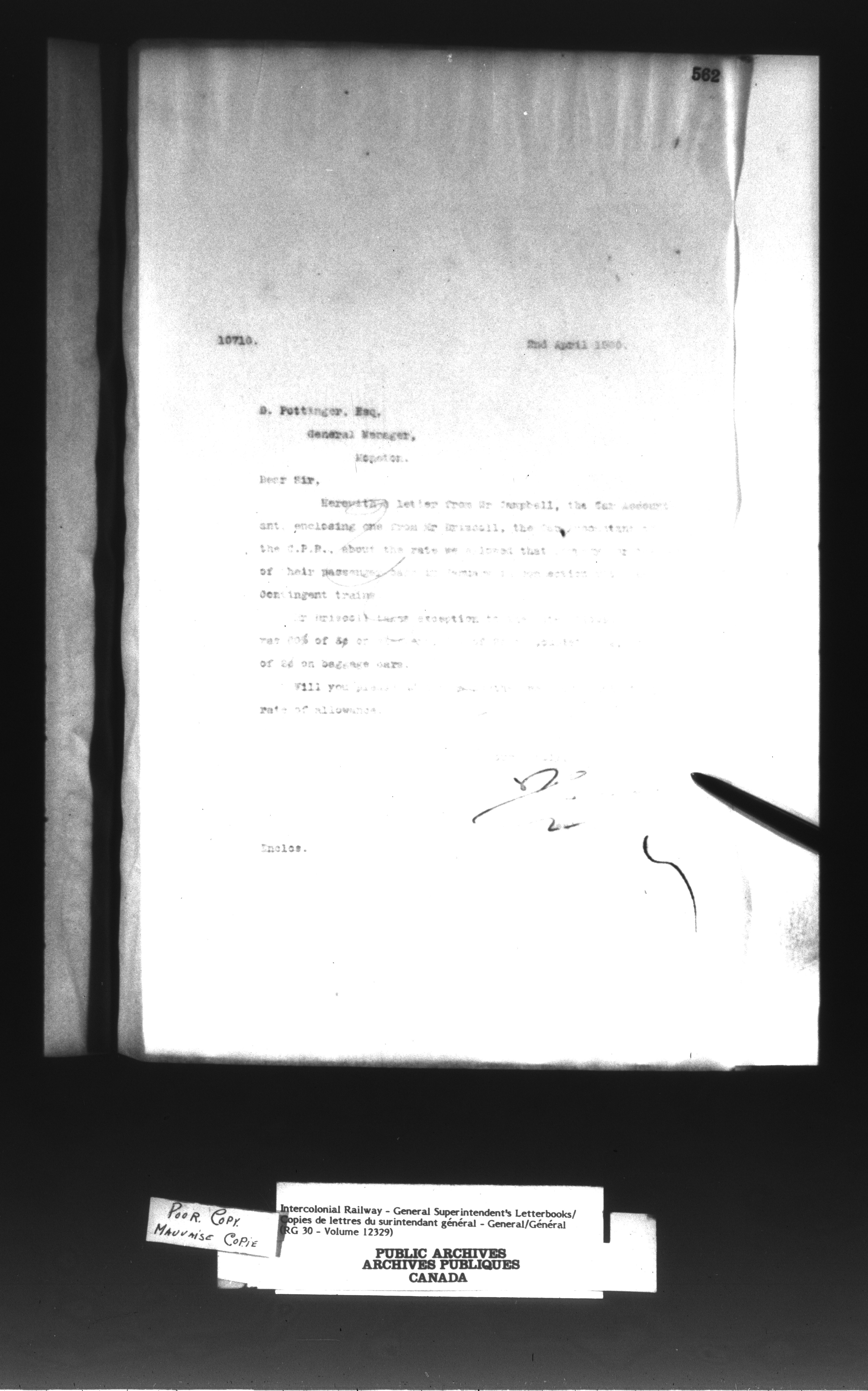 Canadian Government Railways : Office of the General Superintendent - 13017