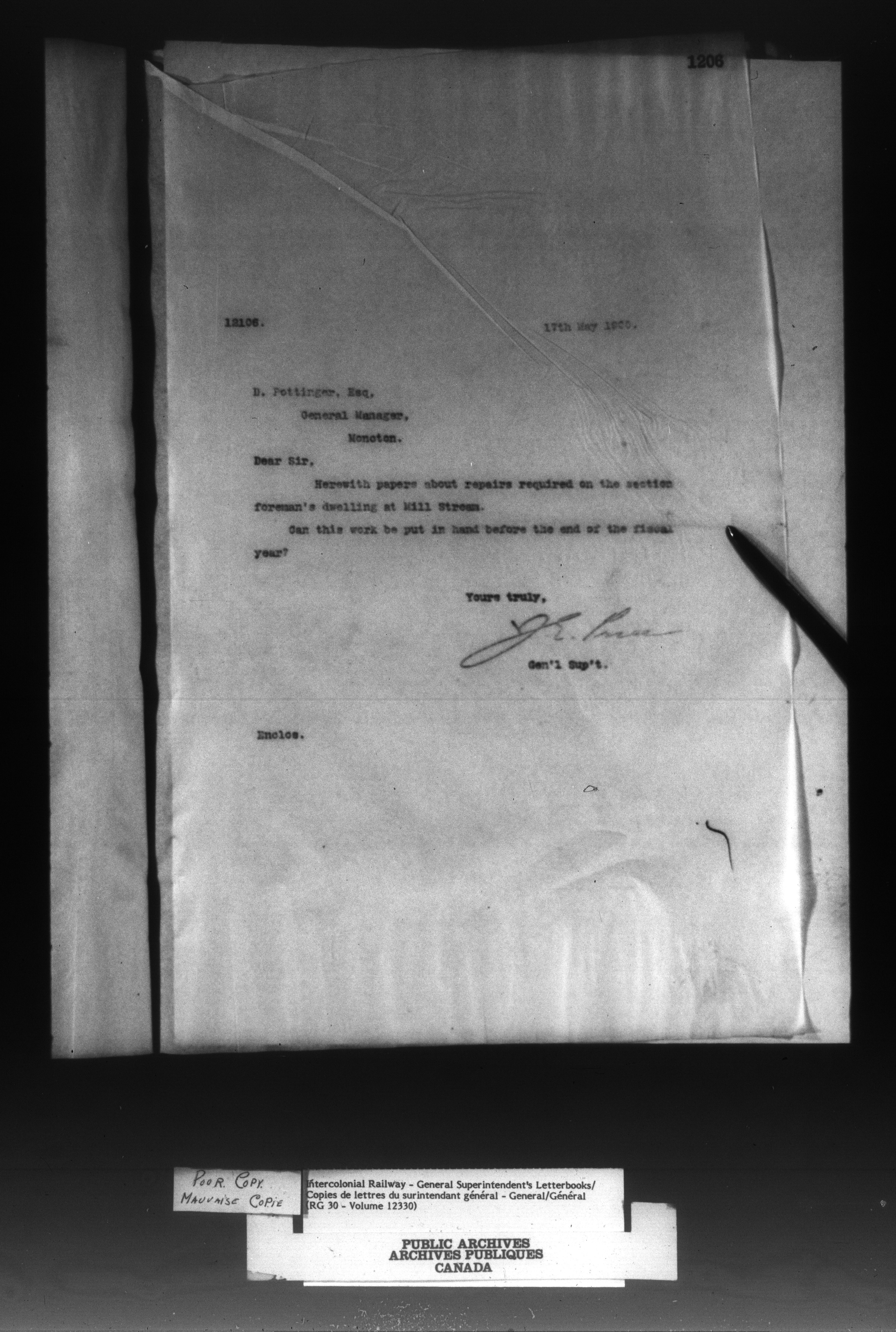 Canadian Government Railways : Office of the General Superintendent - 13018