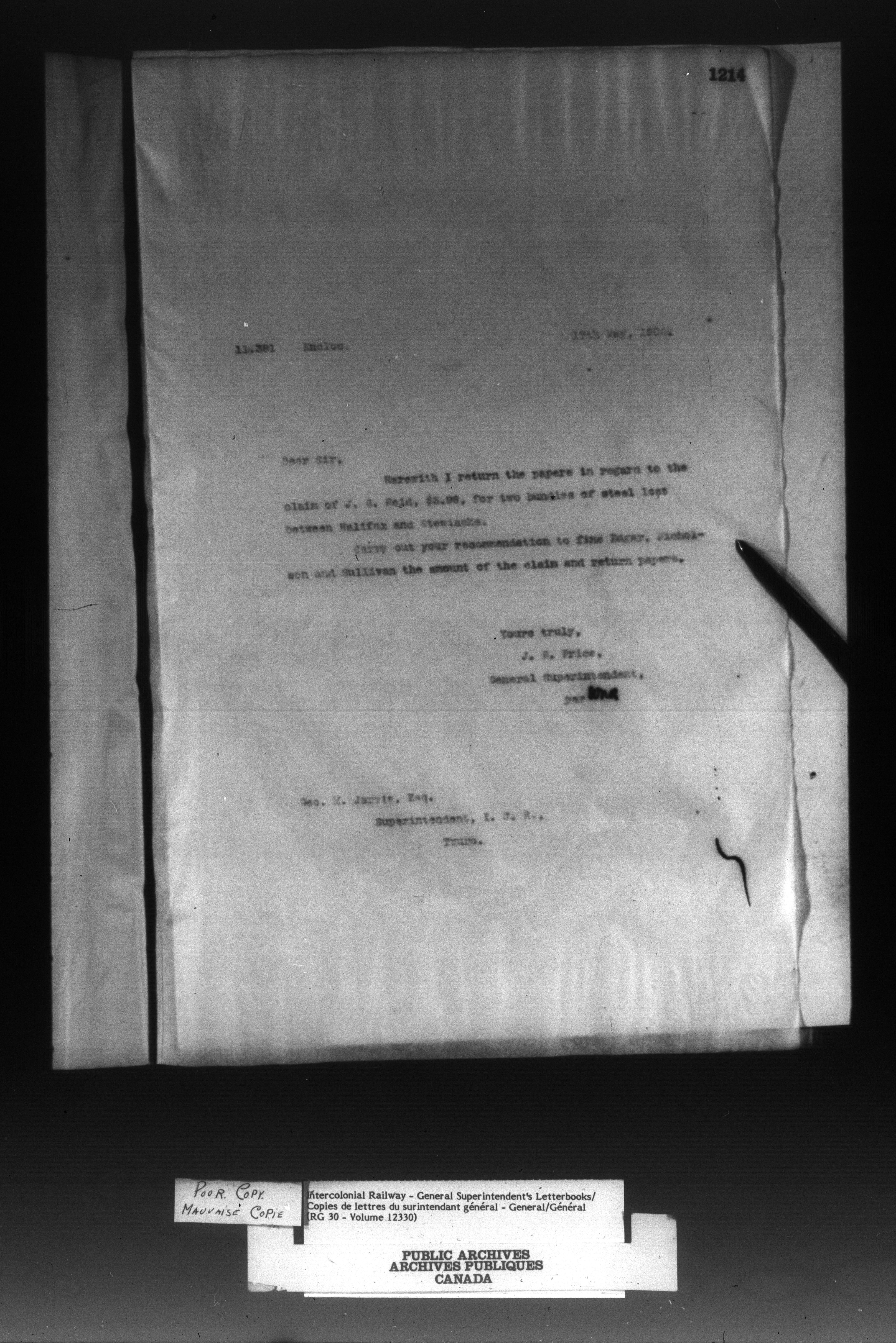 Canadian Government Railways : Office of the General Superintendent - 13018