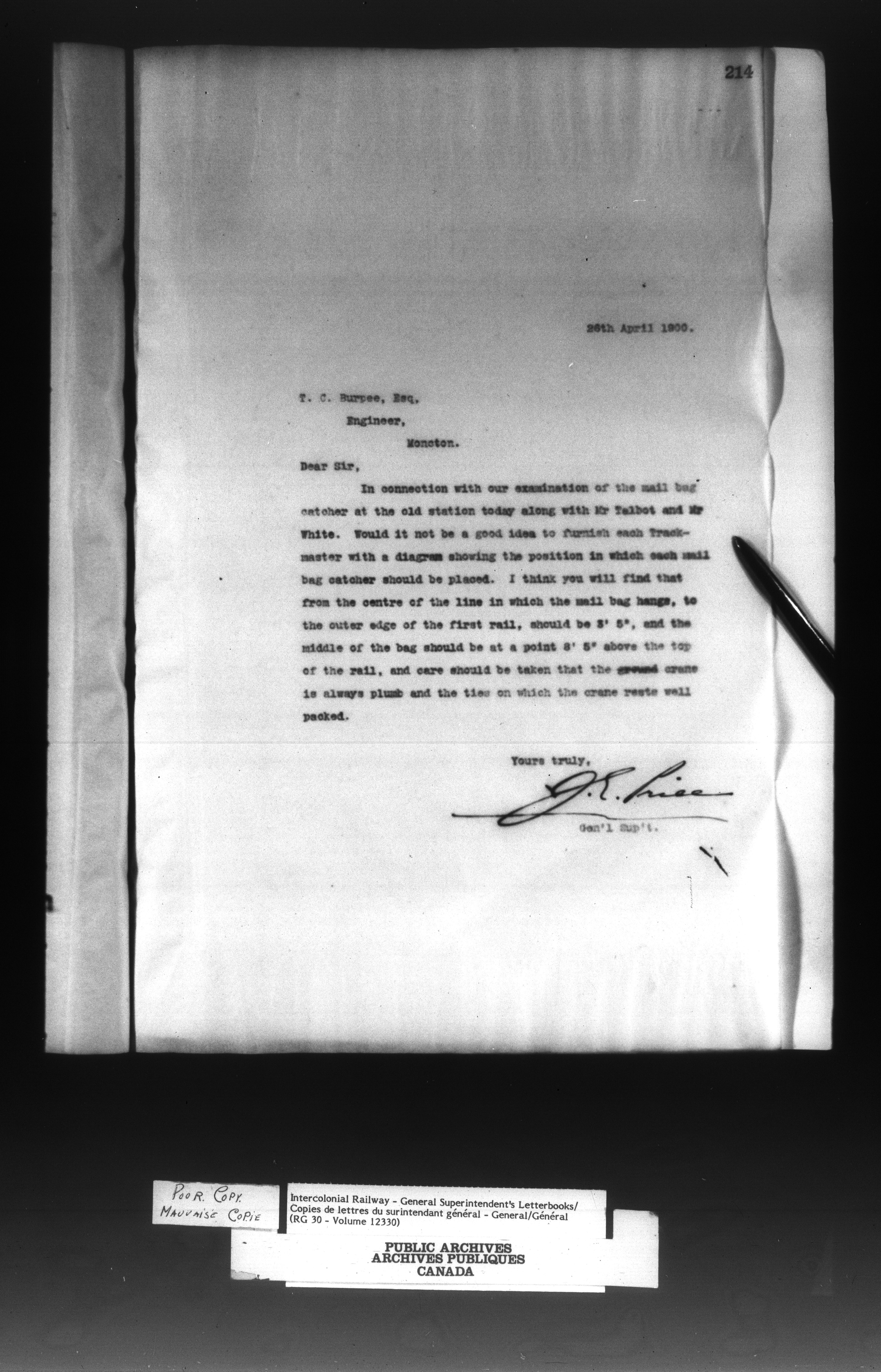 Canadian Government Railways : Office of the General Superintendent - 13018
