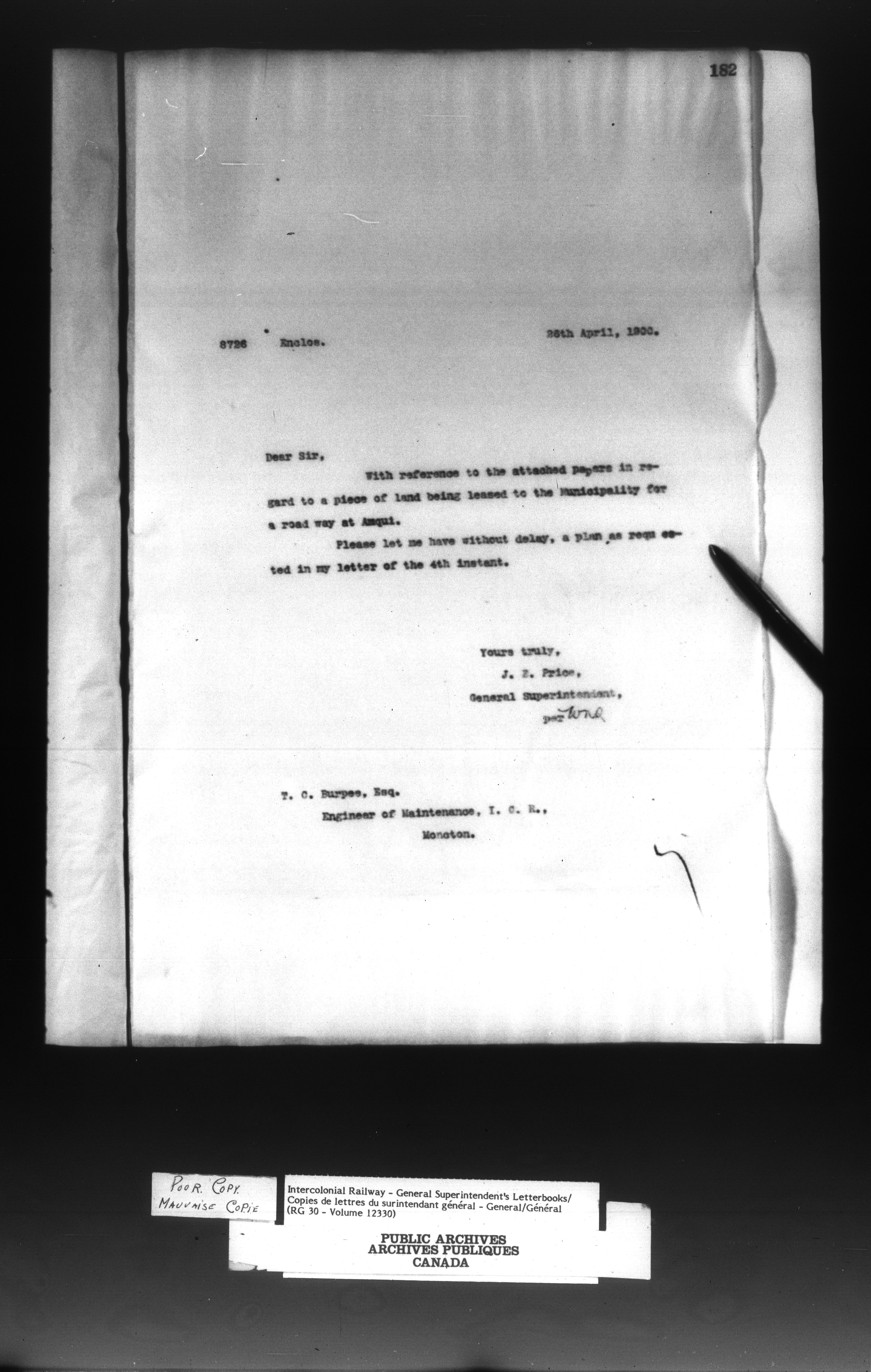 Canadian Government Railways : Office of the General Superintendent - 13018