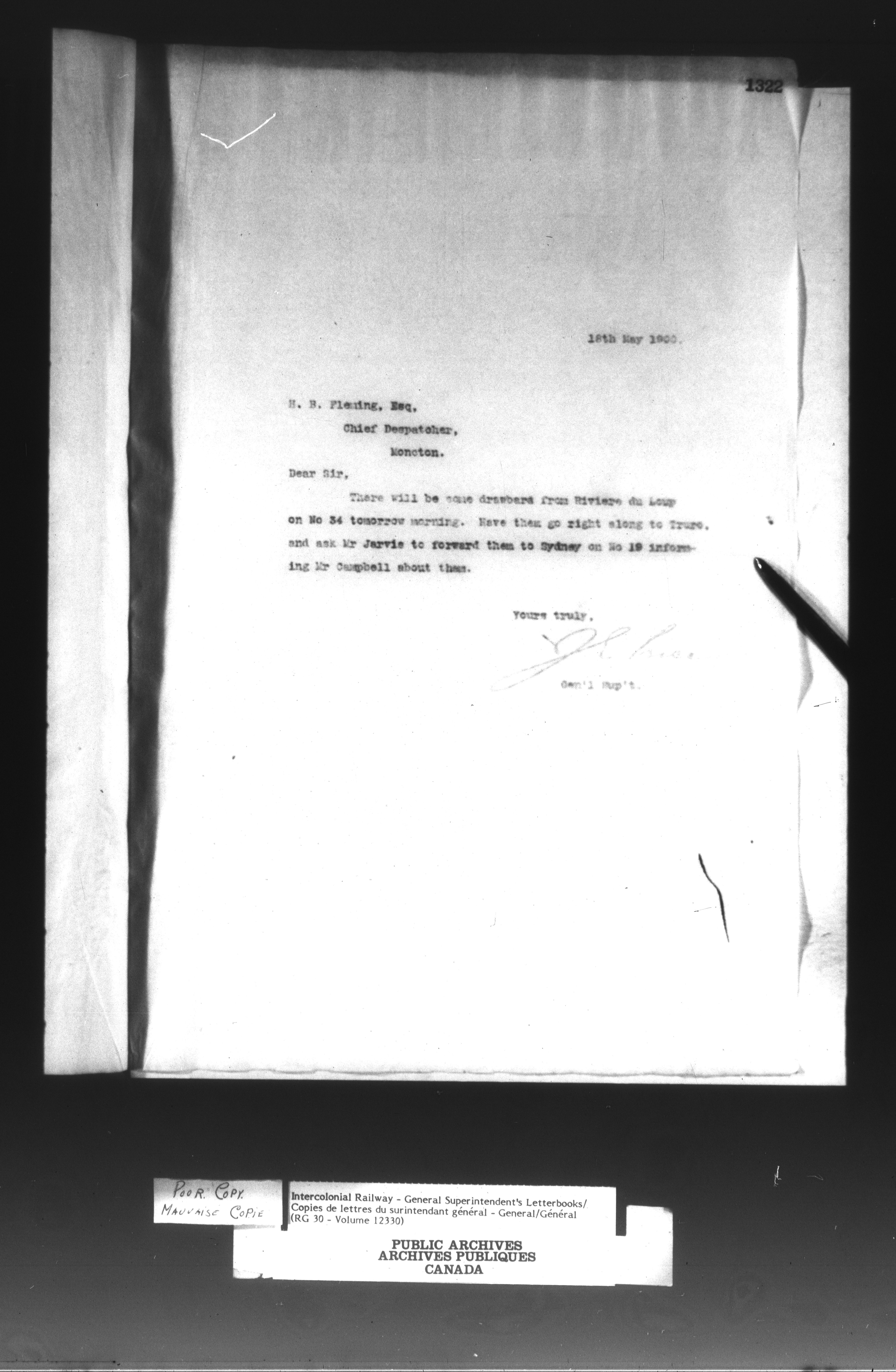 Canadian Government Railways : Office of the General Superintendent correspondence : C-13019