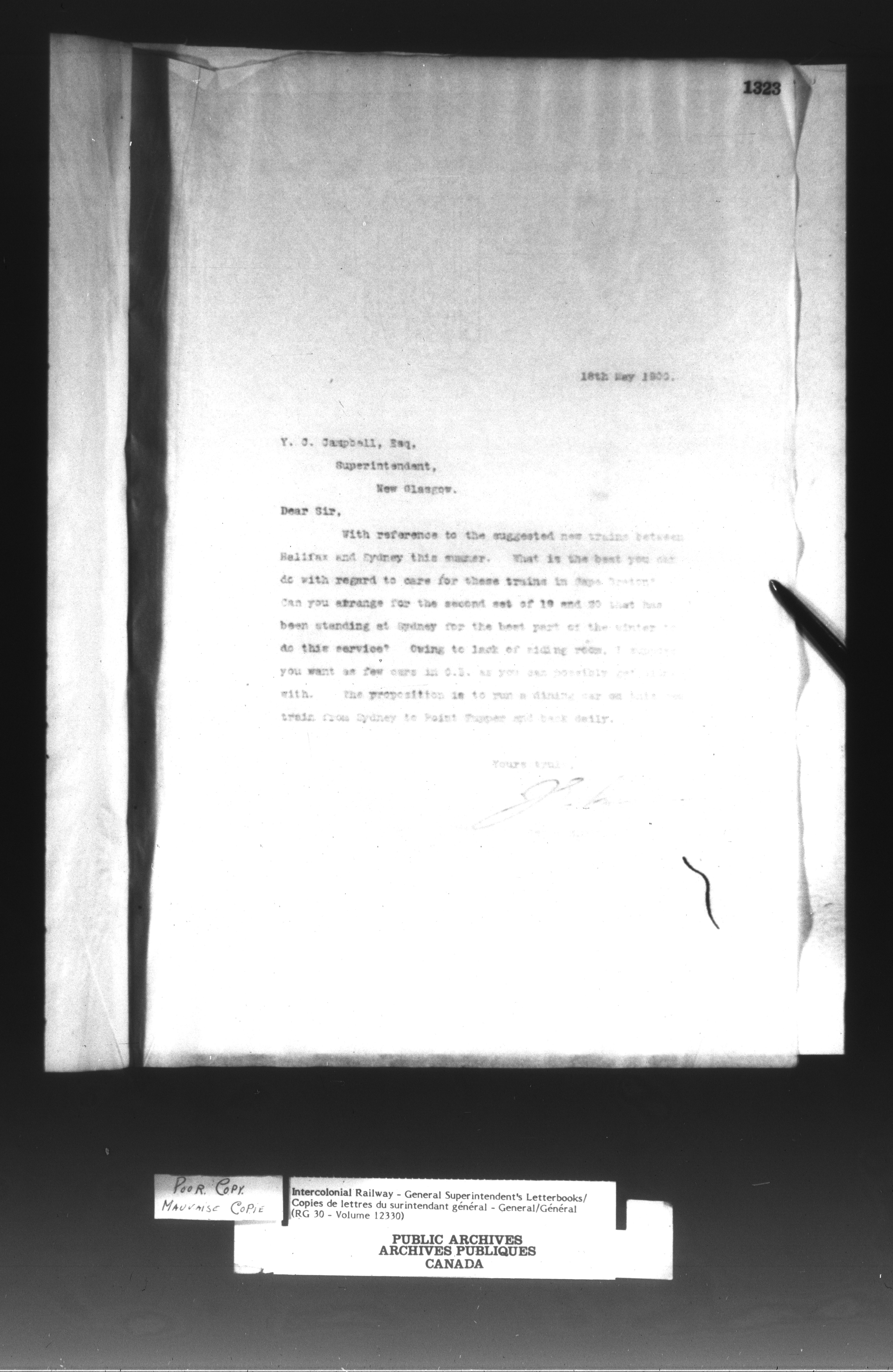 Canadian Government Railways : Office of the General Superintendent correspondence : C-13019