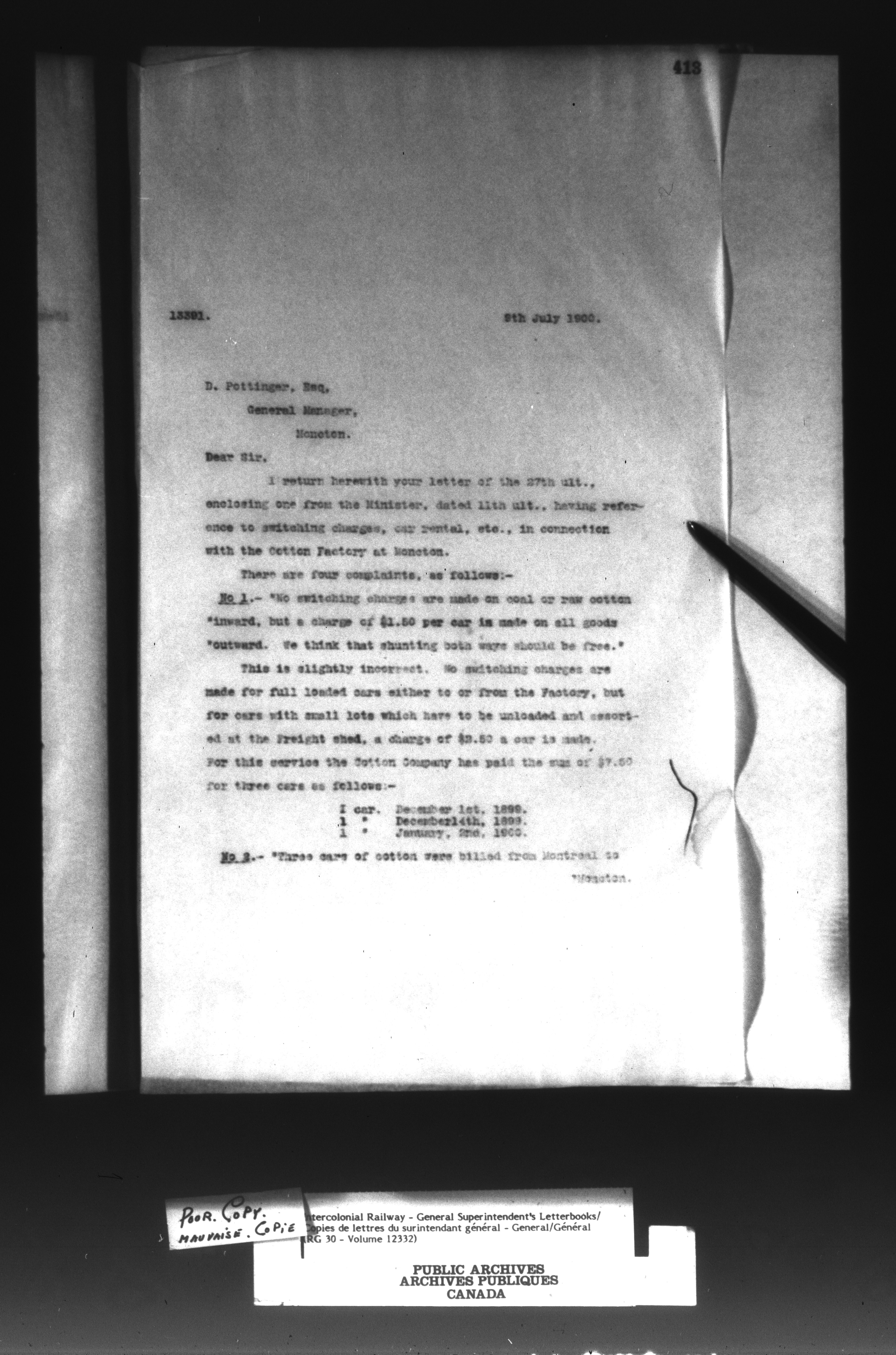 Canadian Government Railways : Office of the General Superintendent - 13020