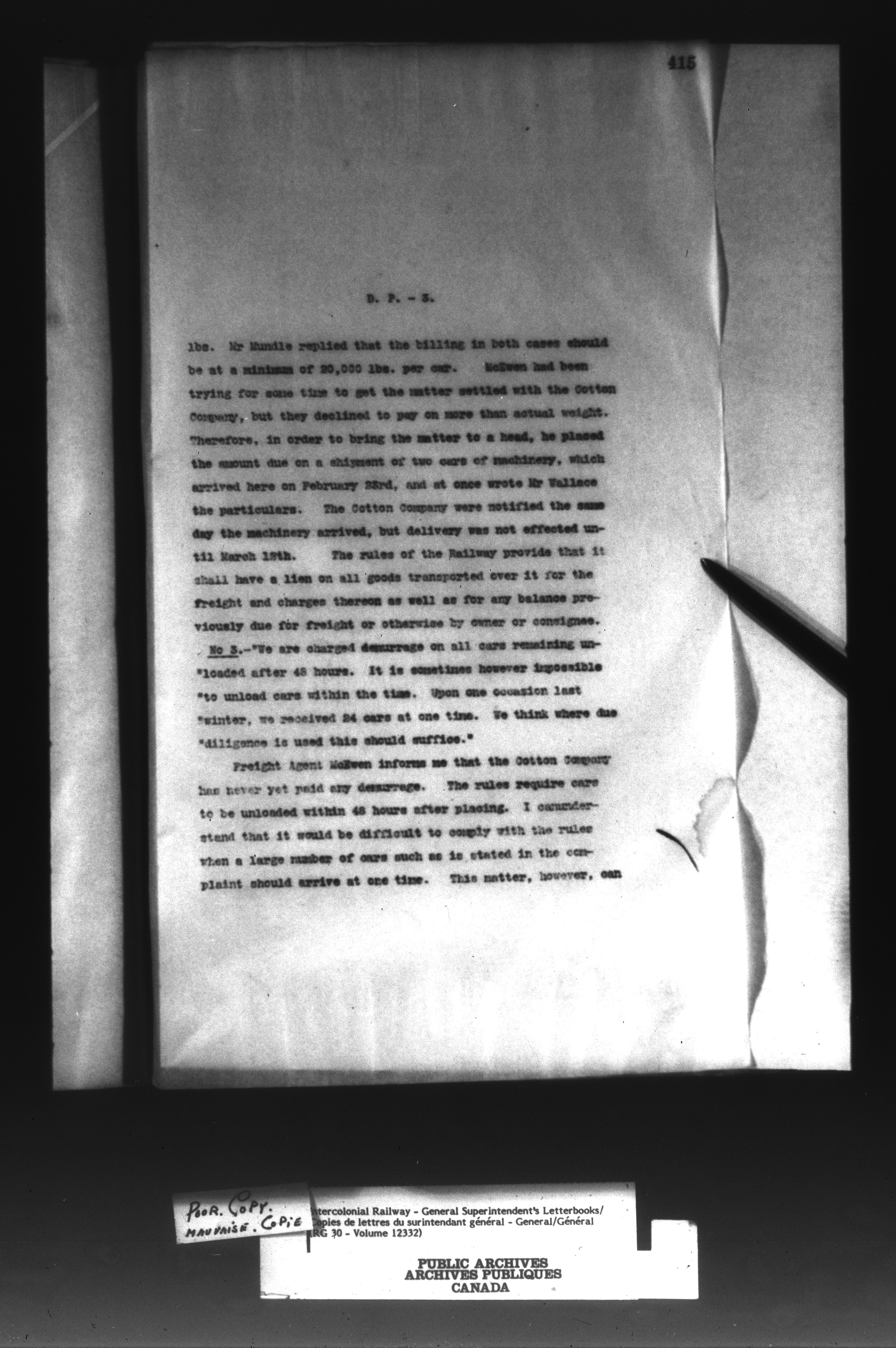 Canadian Government Railways : Office of the General Superintendent - 13020