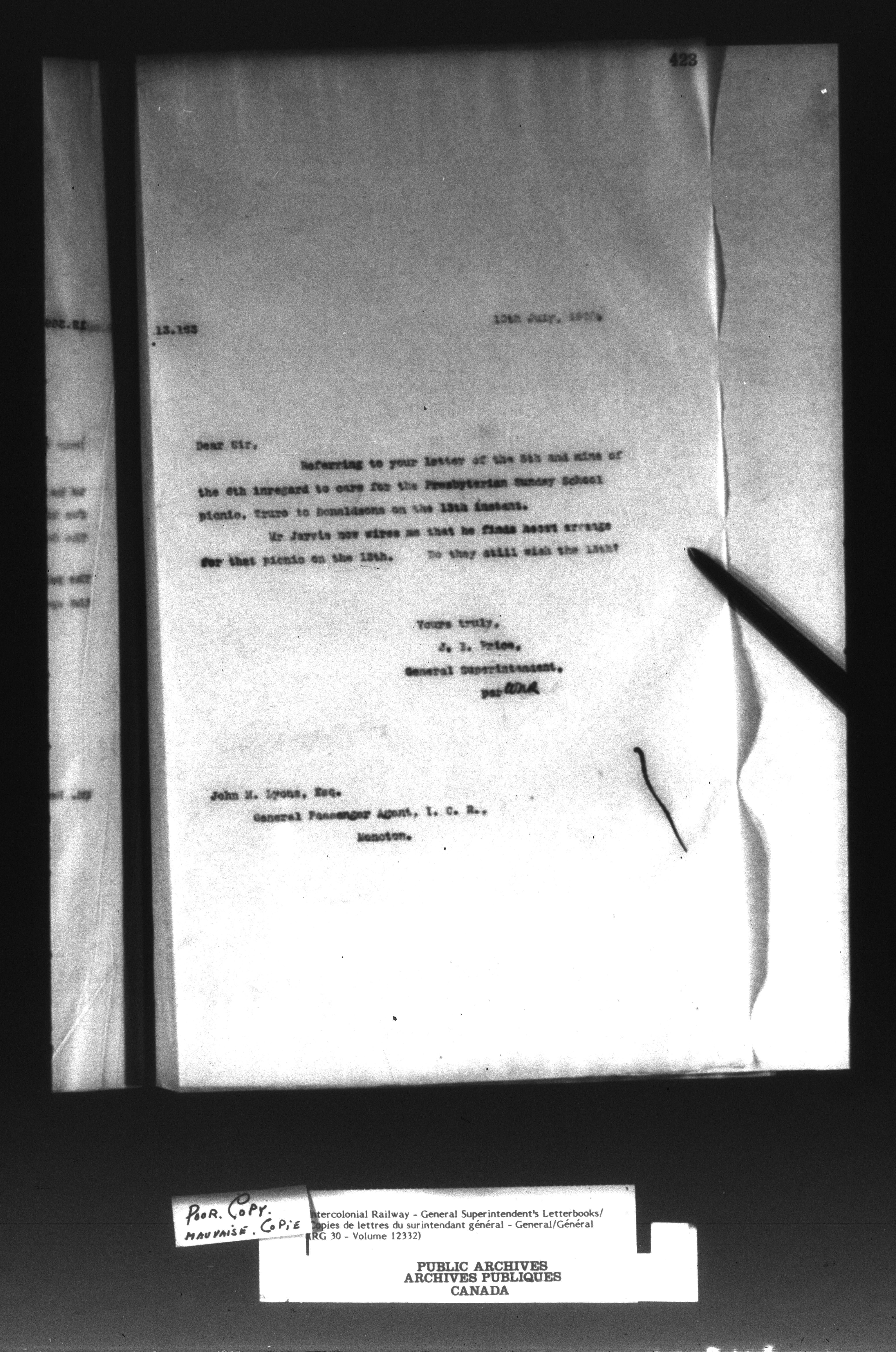 Canadian Government Railways : Office of the General Superintendent - 13020