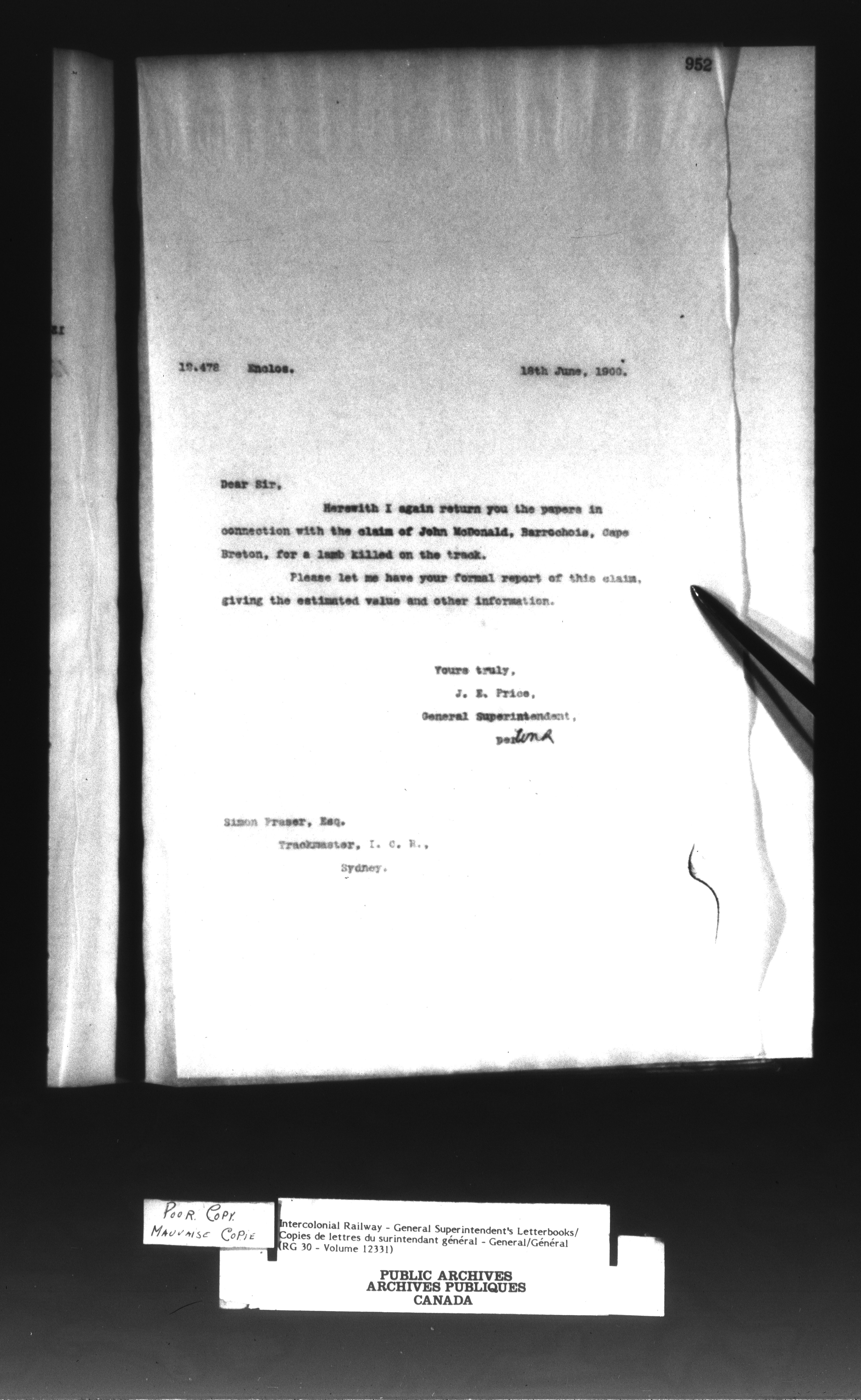 Canadian Government Railways : Office of the General Superintendent - 13020