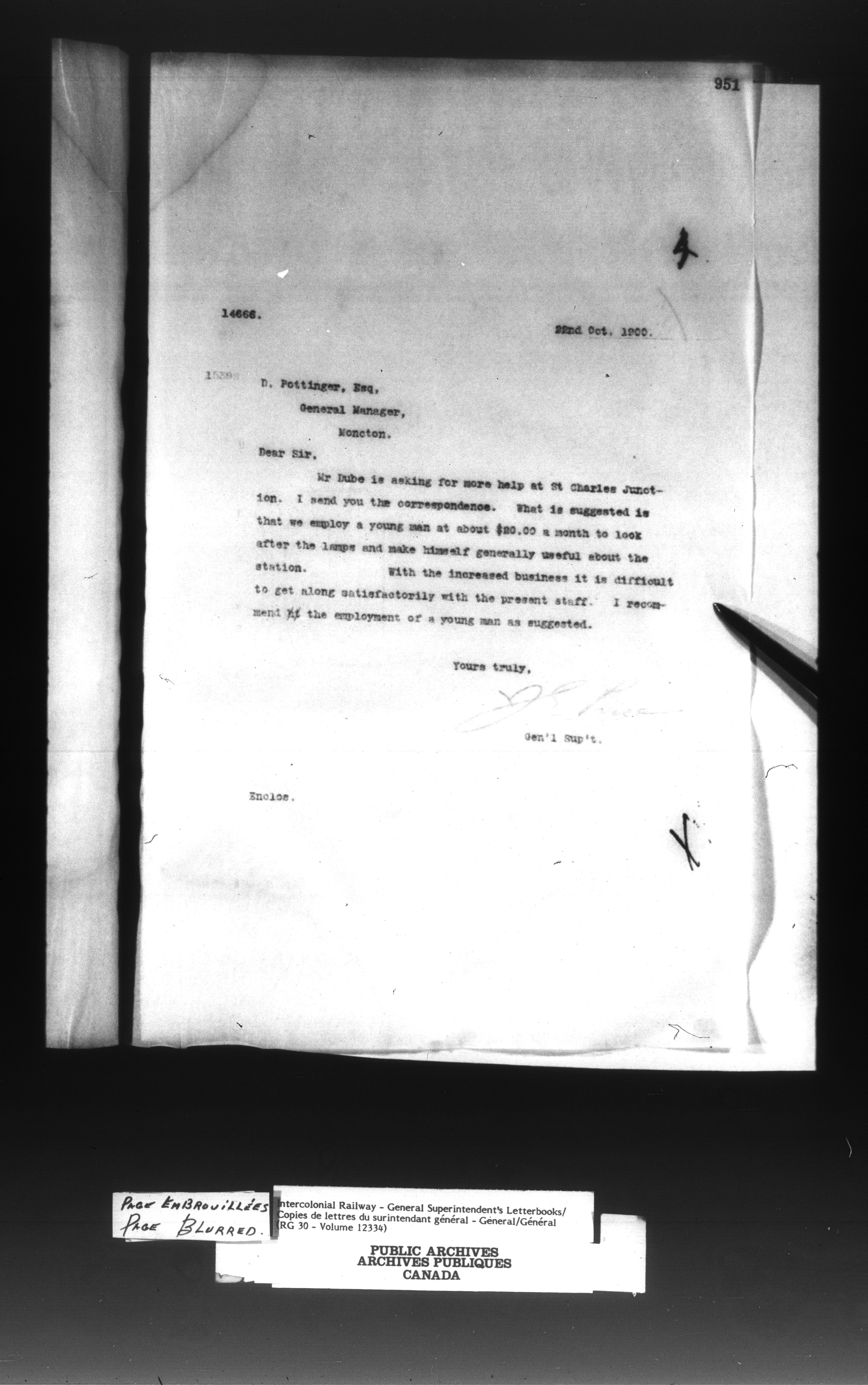 Canadian Government Railways : Office of the General Superintendent correspondence : C-13024
