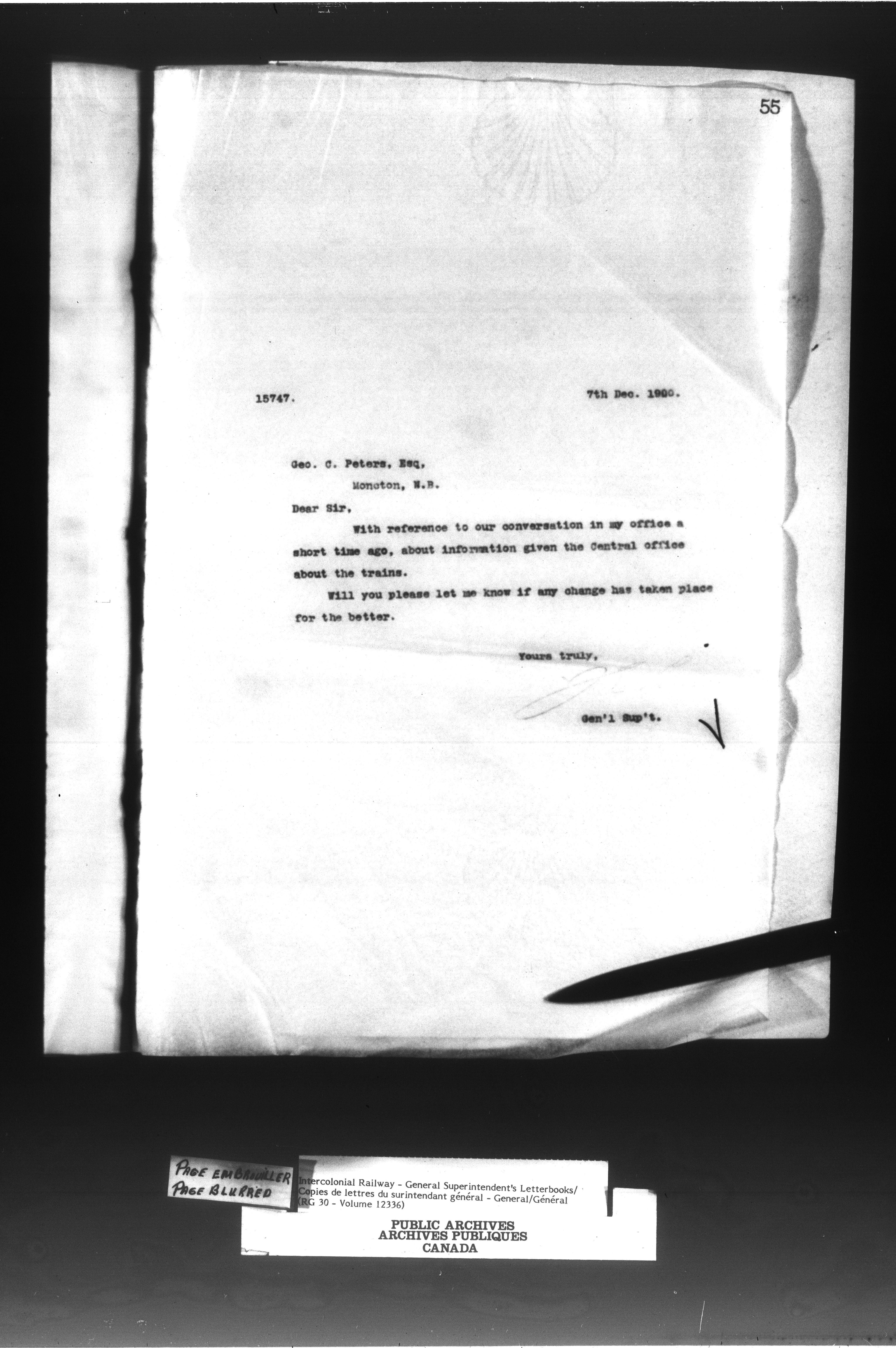 Canadian Government Railways : Office of the General Superintendent correspondence : C-13026