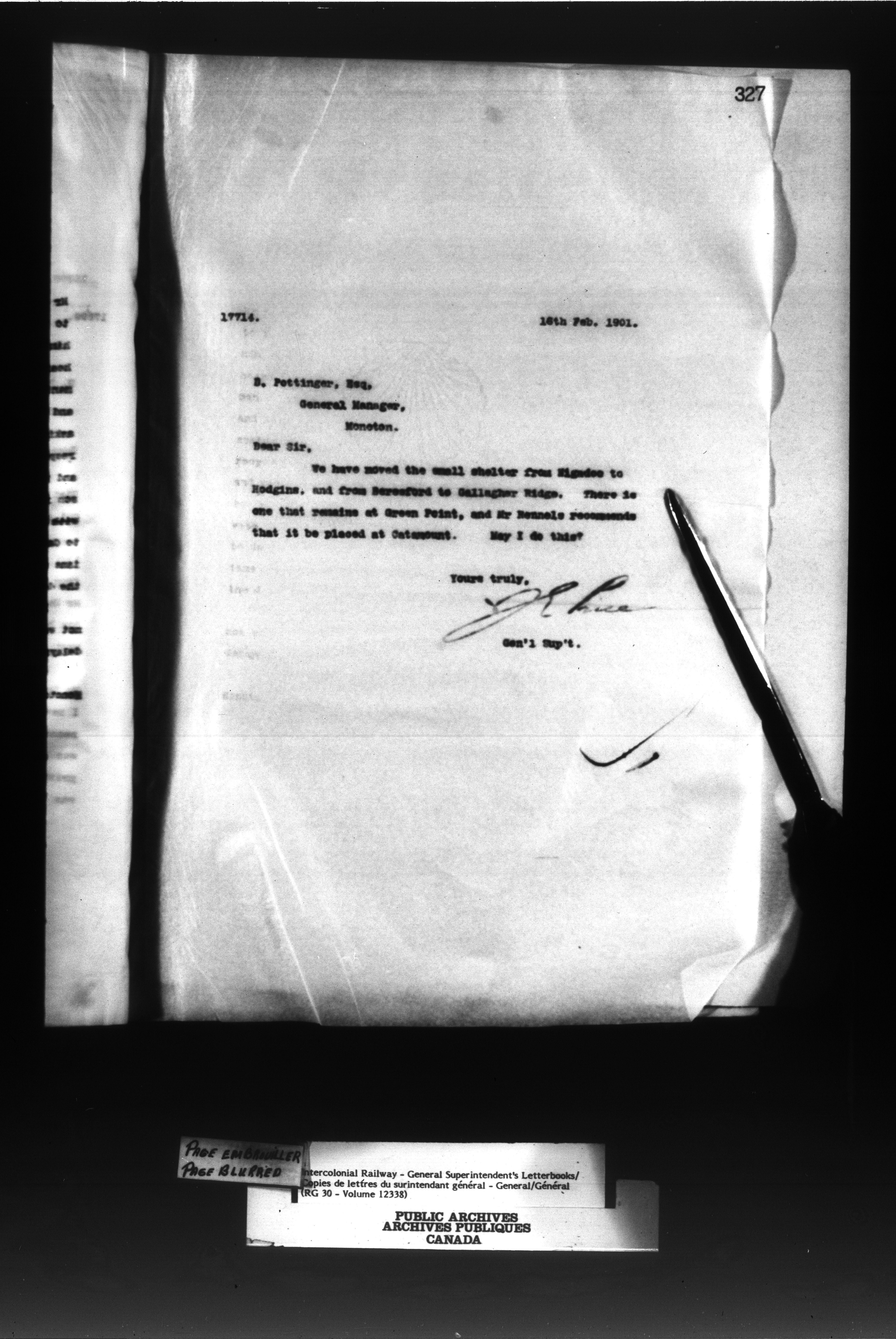 Canadian Government Railways : Office of the General Superintendent - 13029