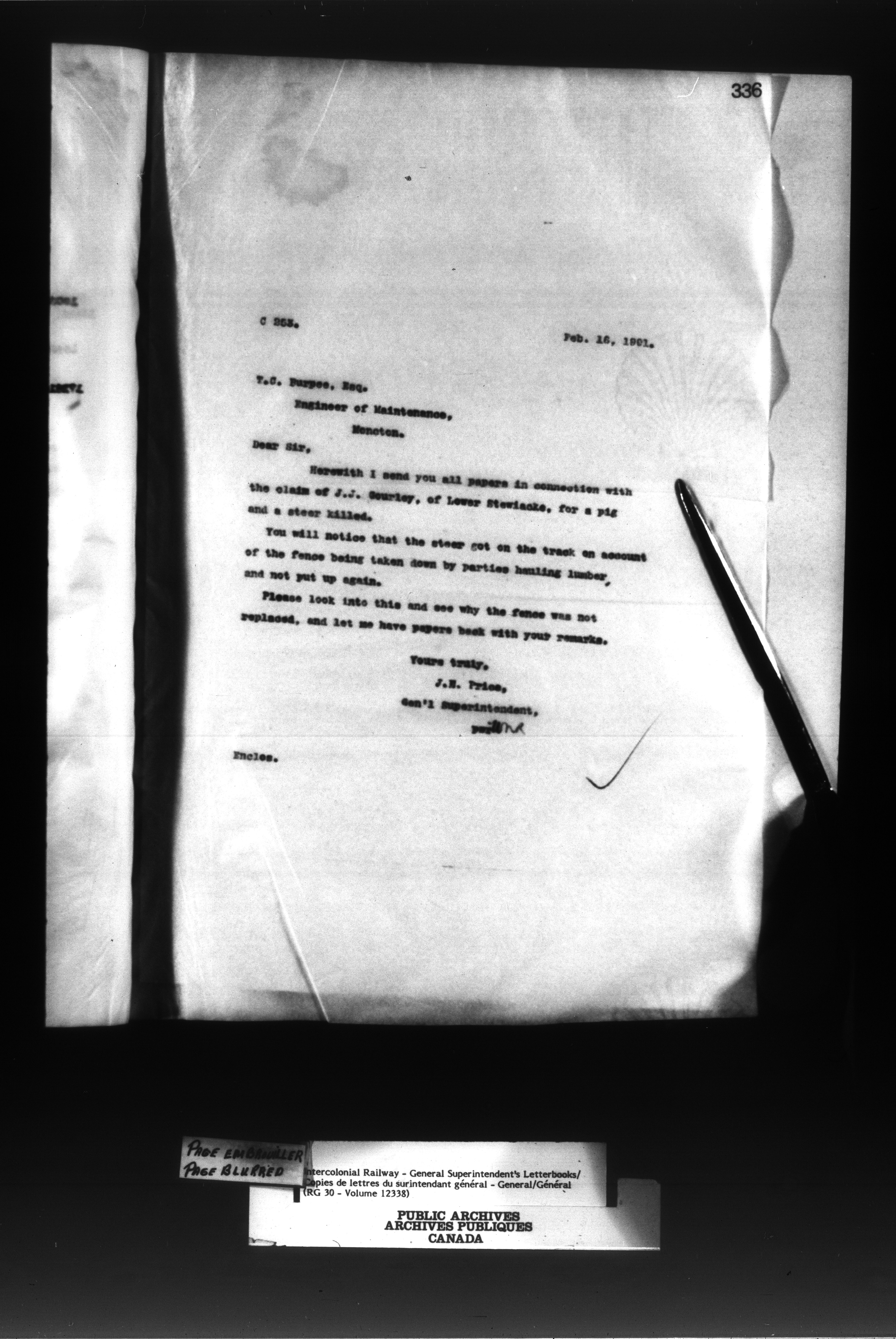 Canadian Government Railways : Office of the General Superintendent - 13029