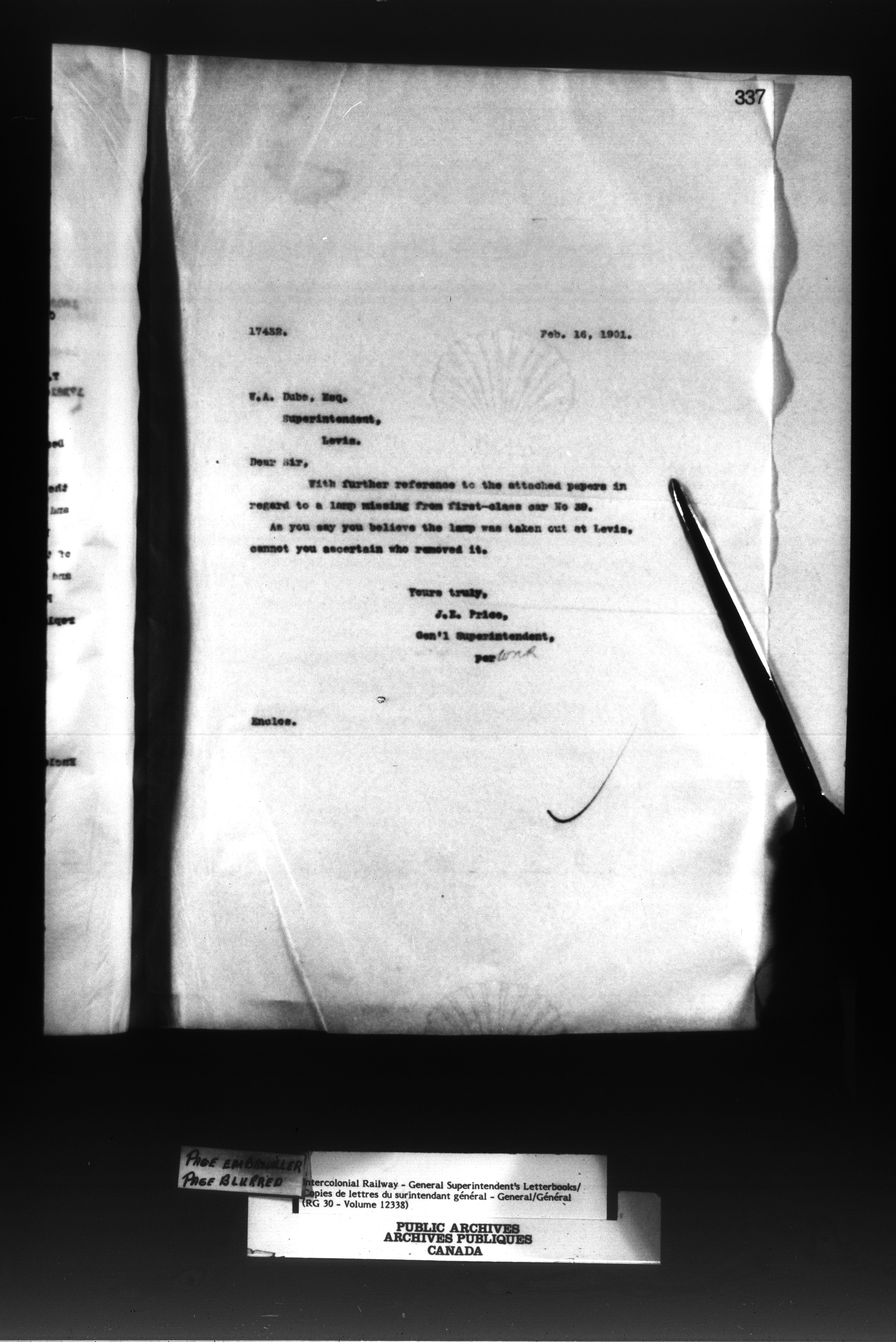 Canadian Government Railways : Office of the General Superintendent - 13029
