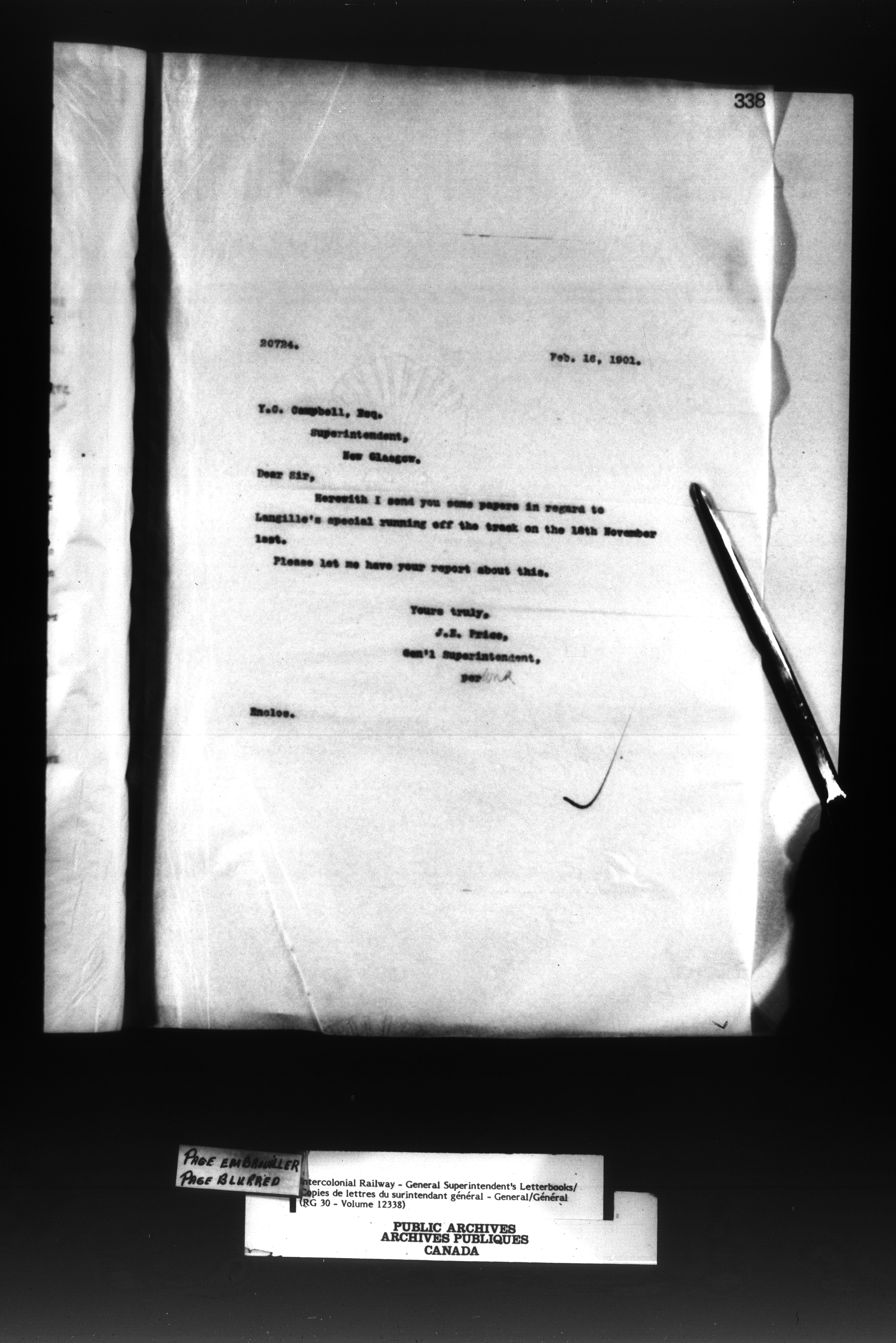 Canadian Government Railways : Office of the General Superintendent - 13029