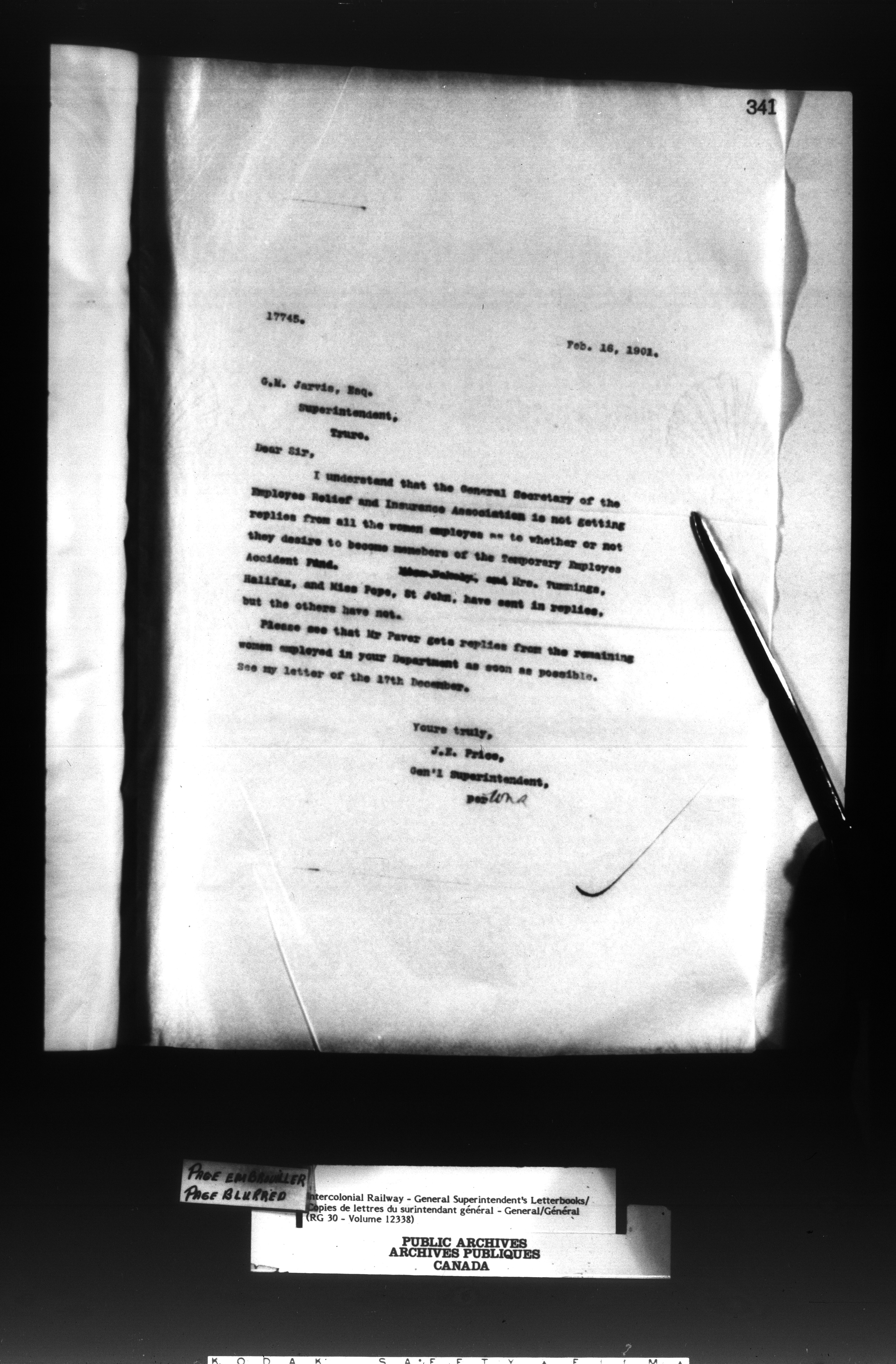 Canadian Government Railways : Office of the General Superintendent - 13029