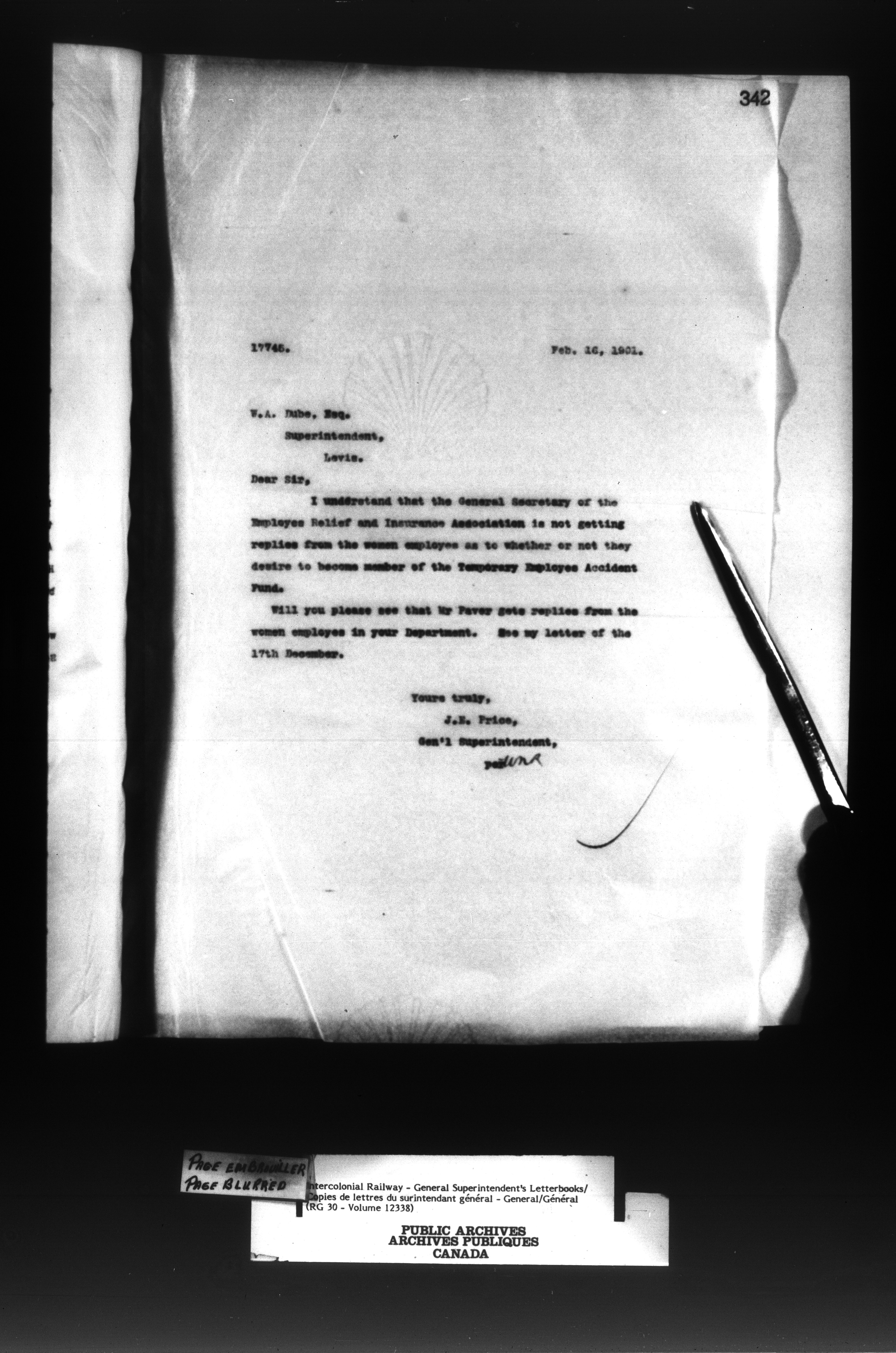 Canadian Government Railways : Office of the General Superintendent - 13029