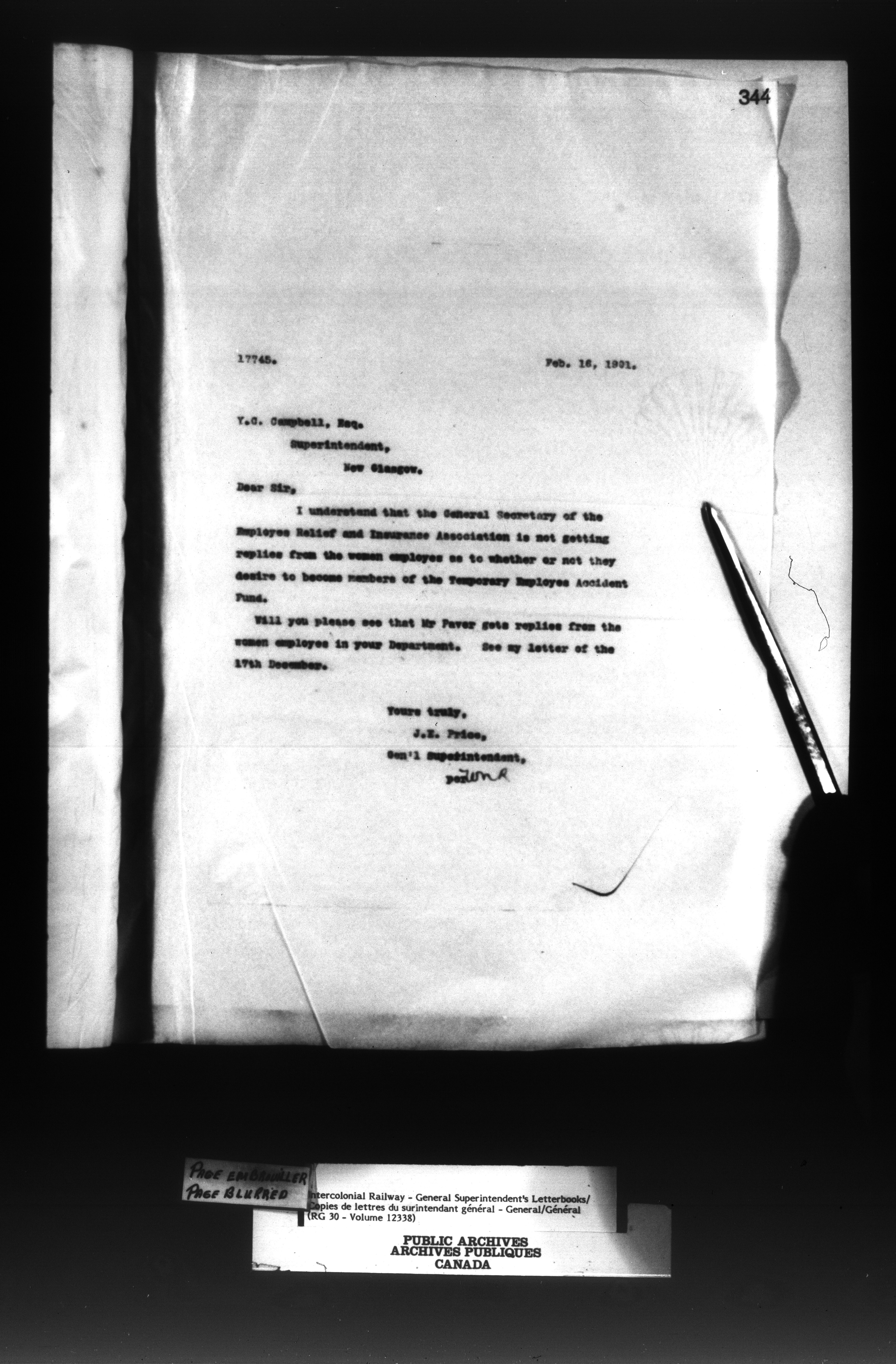 Canadian Government Railways : Office of the General Superintendent - 13029