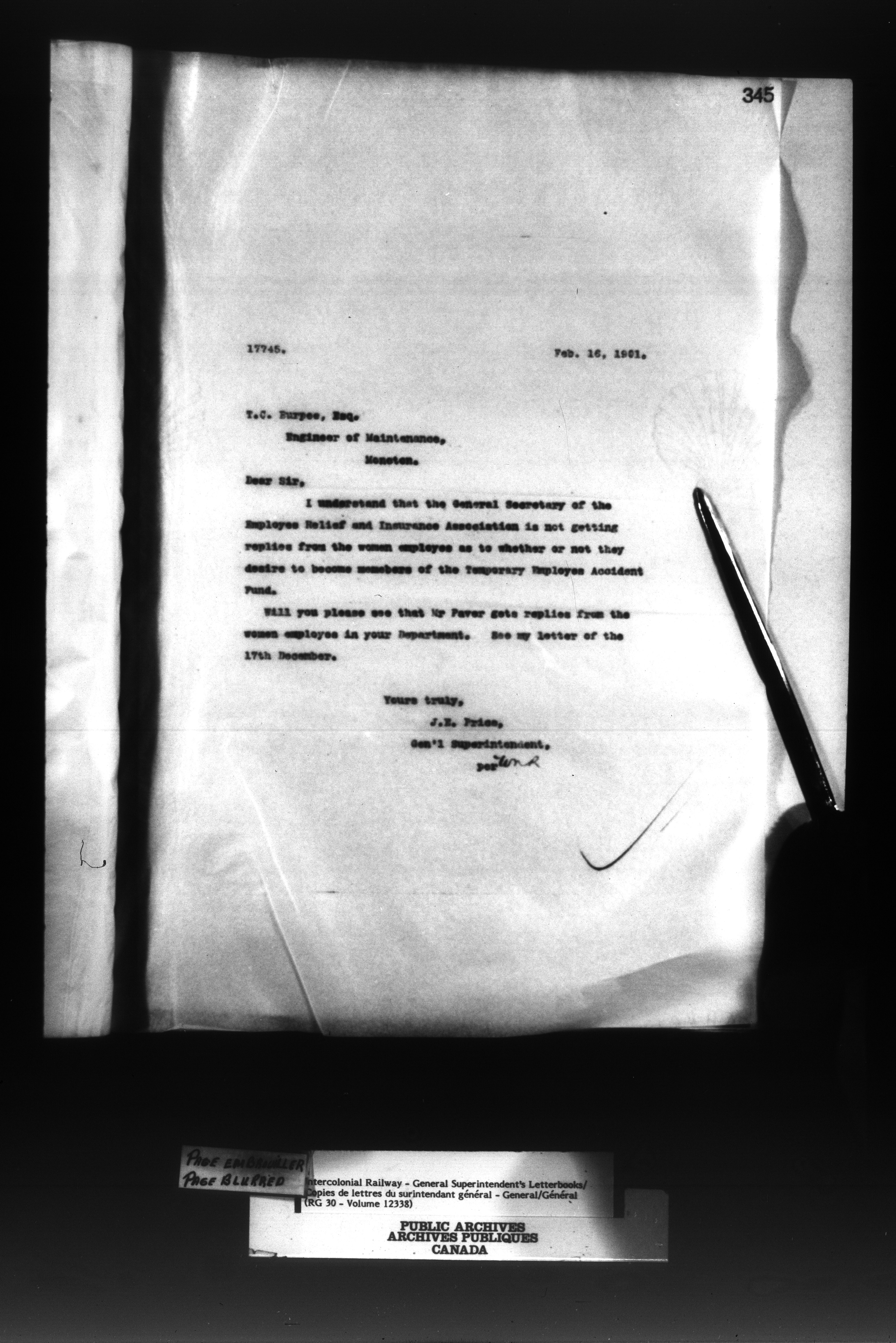 Canadian Government Railways : Office of the General Superintendent - 13029