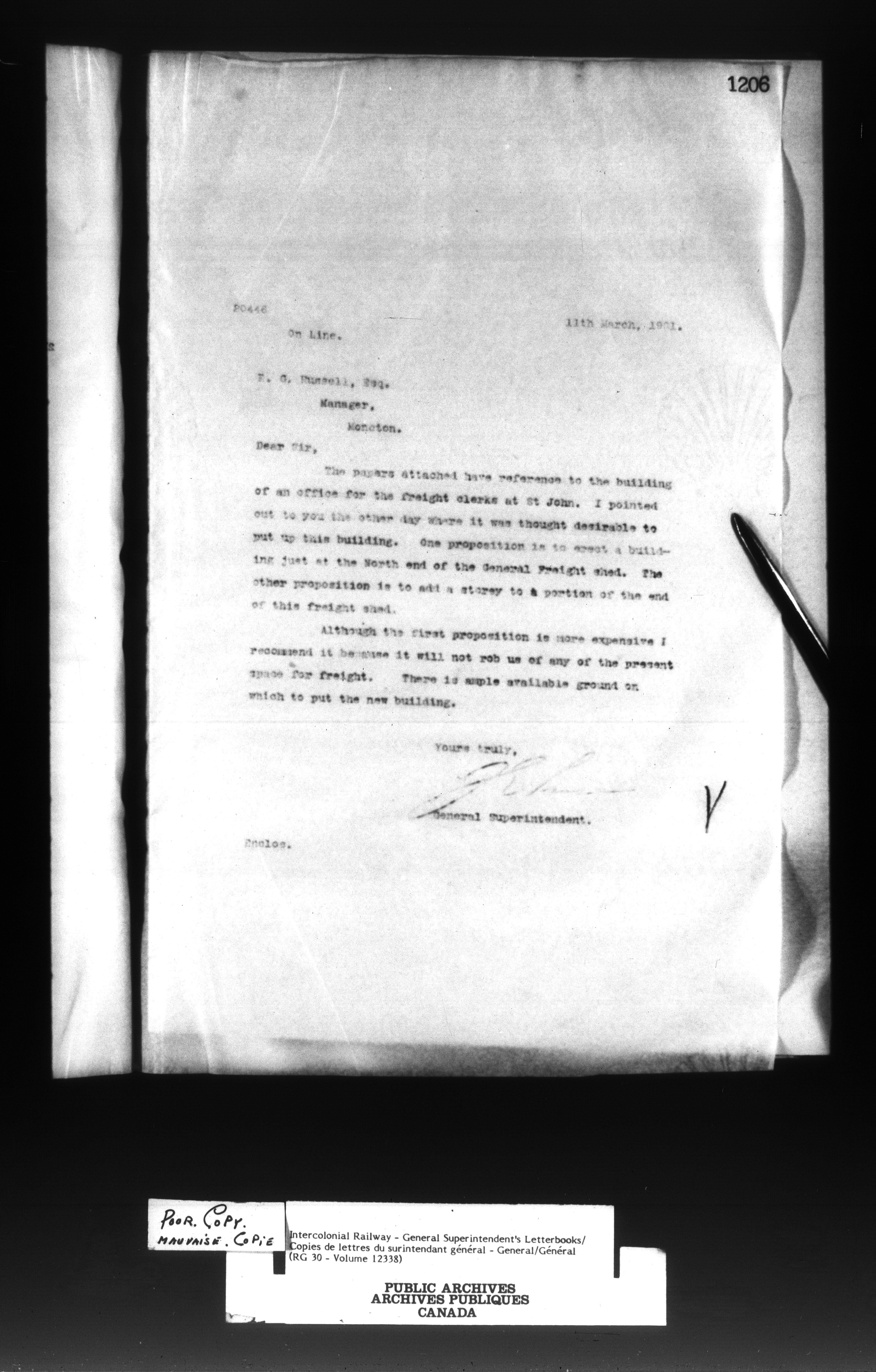 Canadian Government Railways : Office of the General Superintendent - 13029