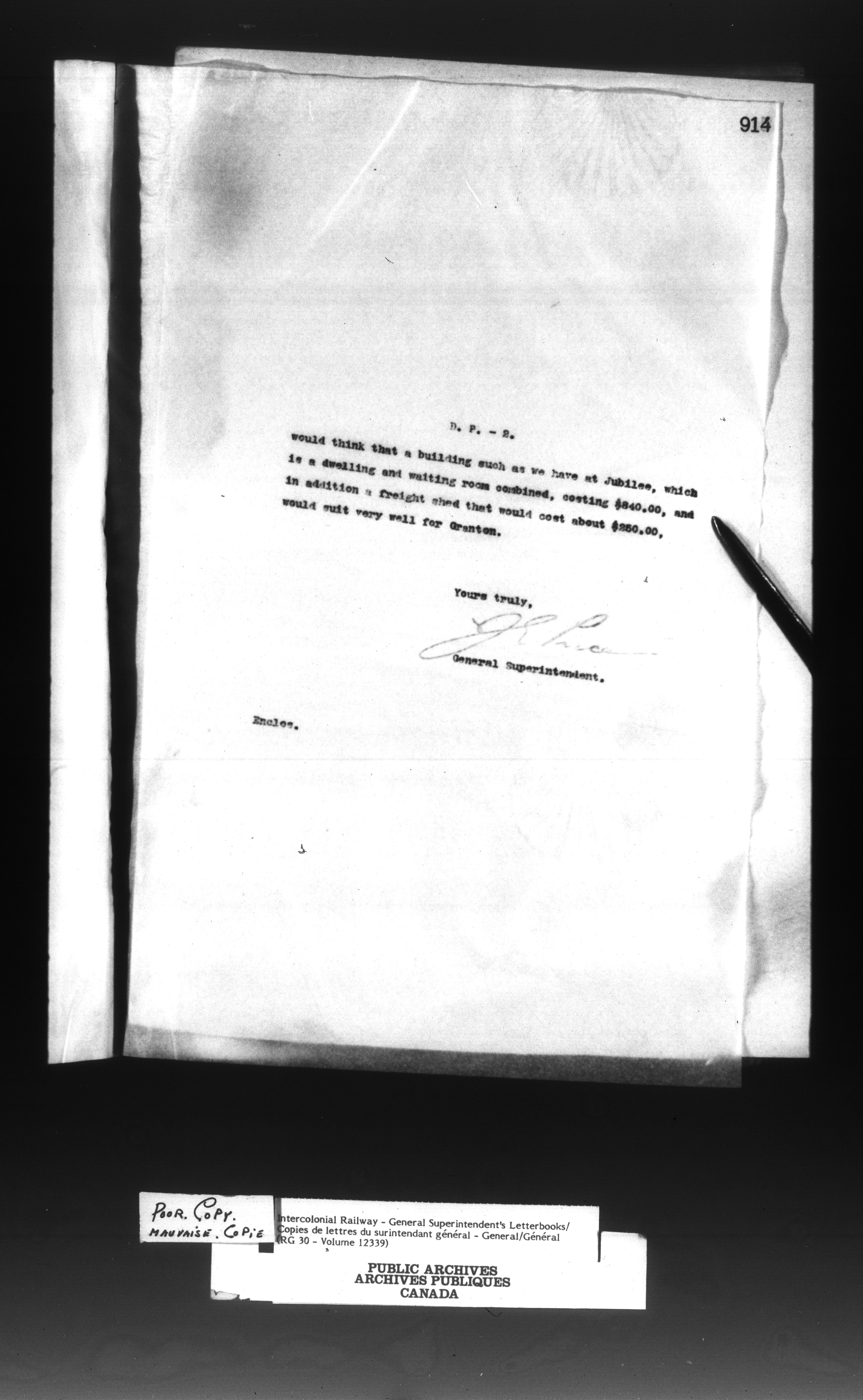 Canadian Government Railways : Office of the General Superintendent - 13031