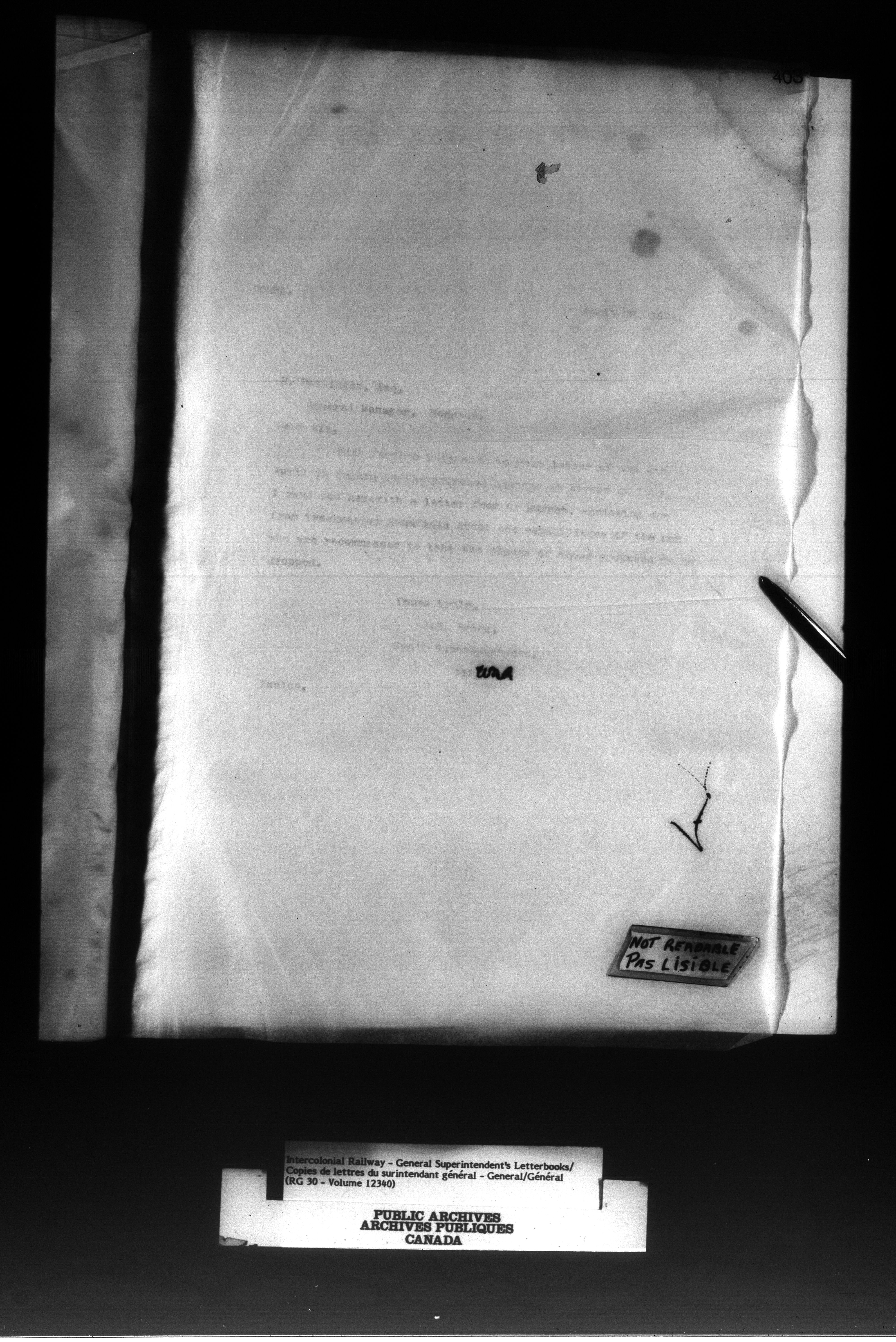Canadian Government Railways : Office of the General Superintendent correspondence : C-13032
