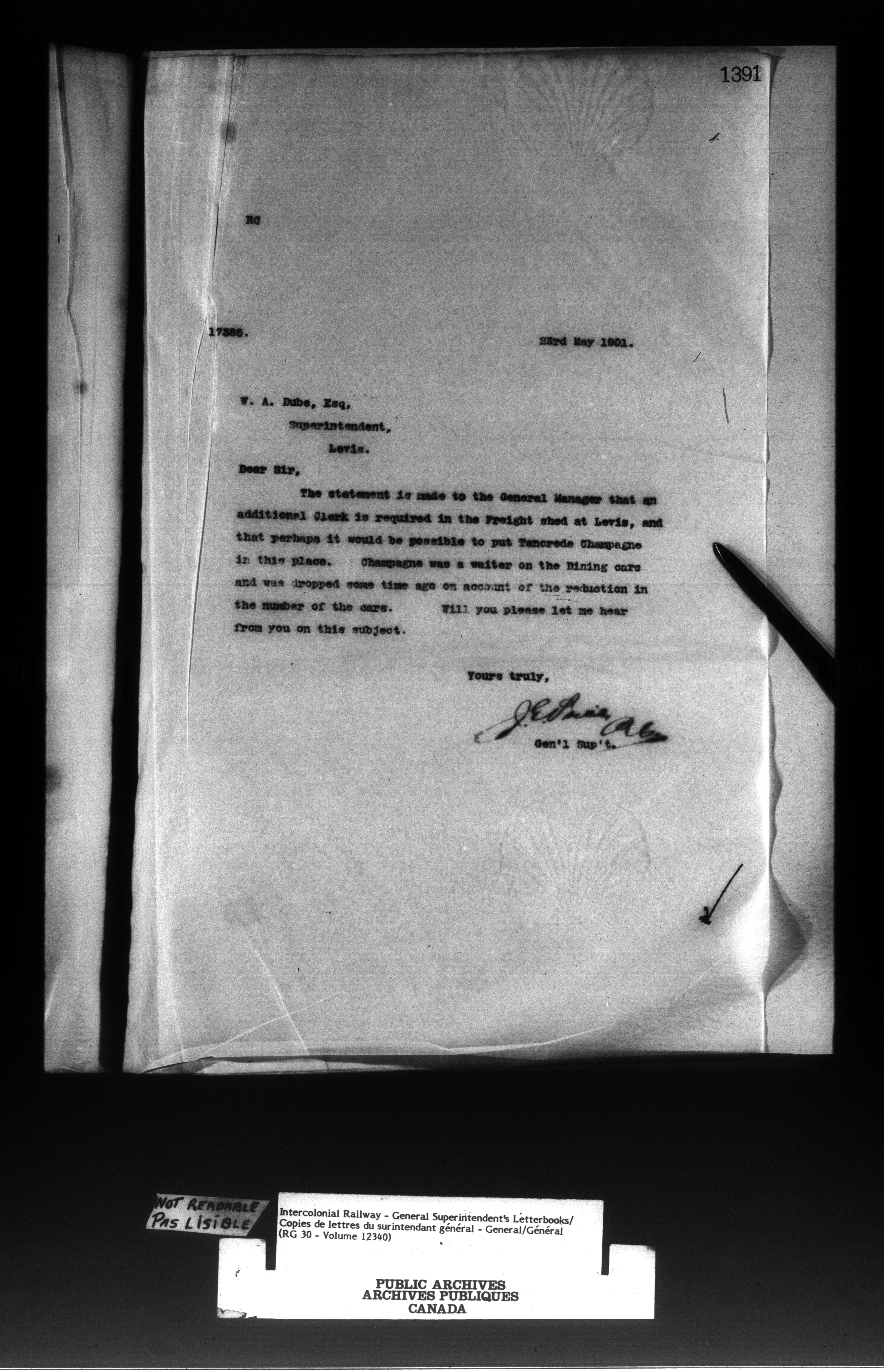 Canadian Government Railways : Office of the General Superintendent correspondence : C-13032