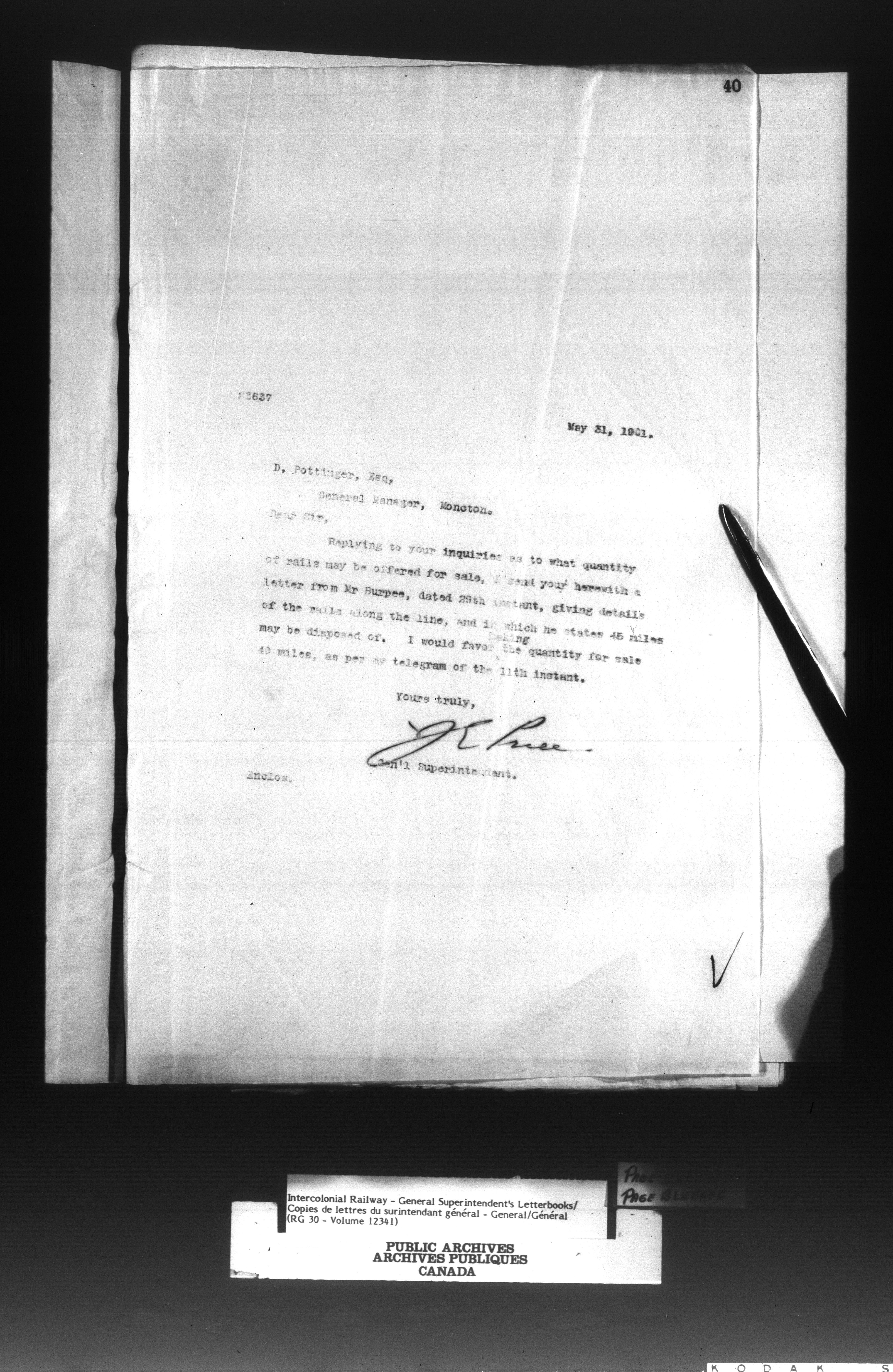 Canadian Government Railways : Office of the General Superintendent - 13033