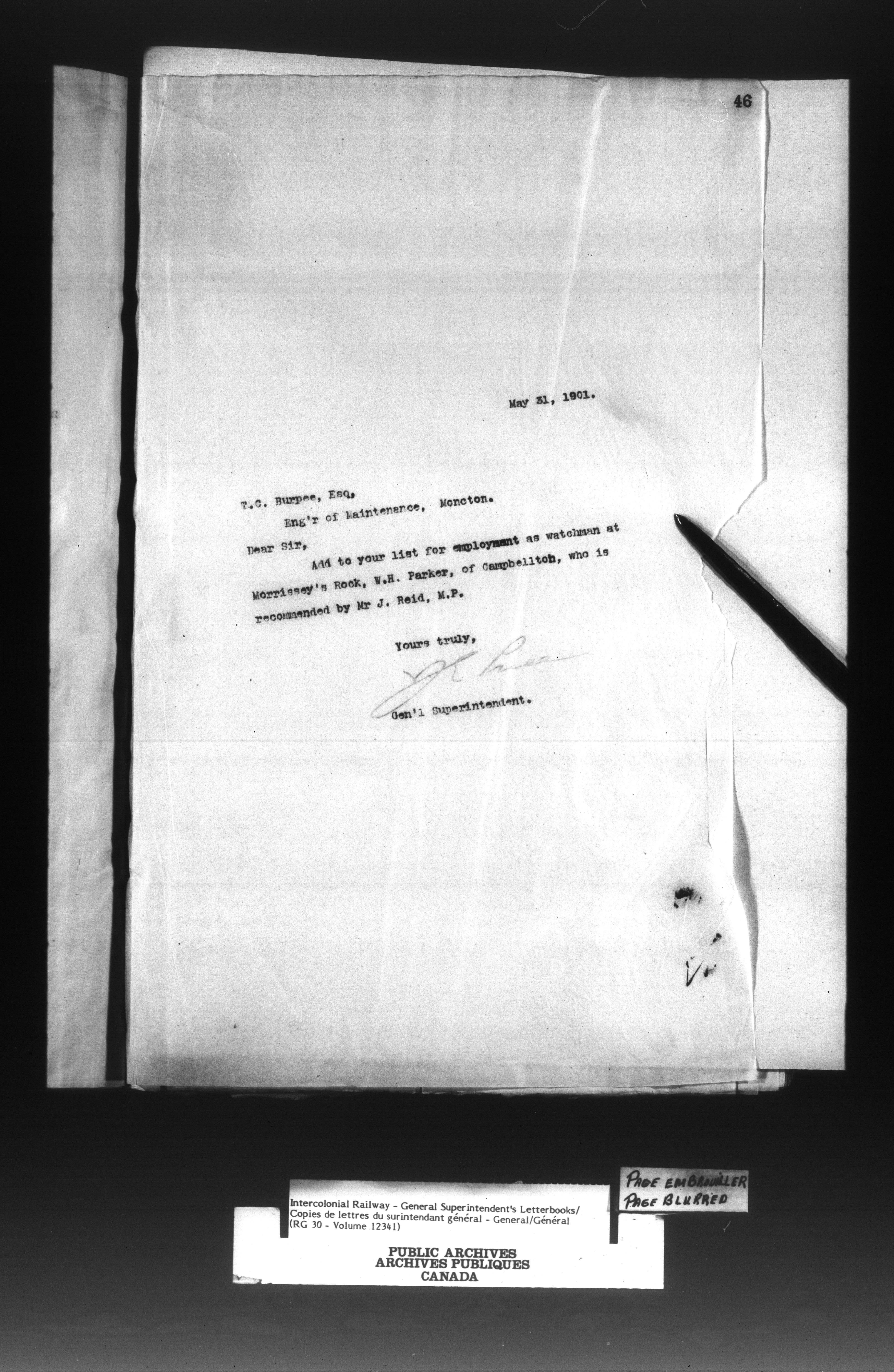 Canadian Government Railways : Office of the General Superintendent - 13033