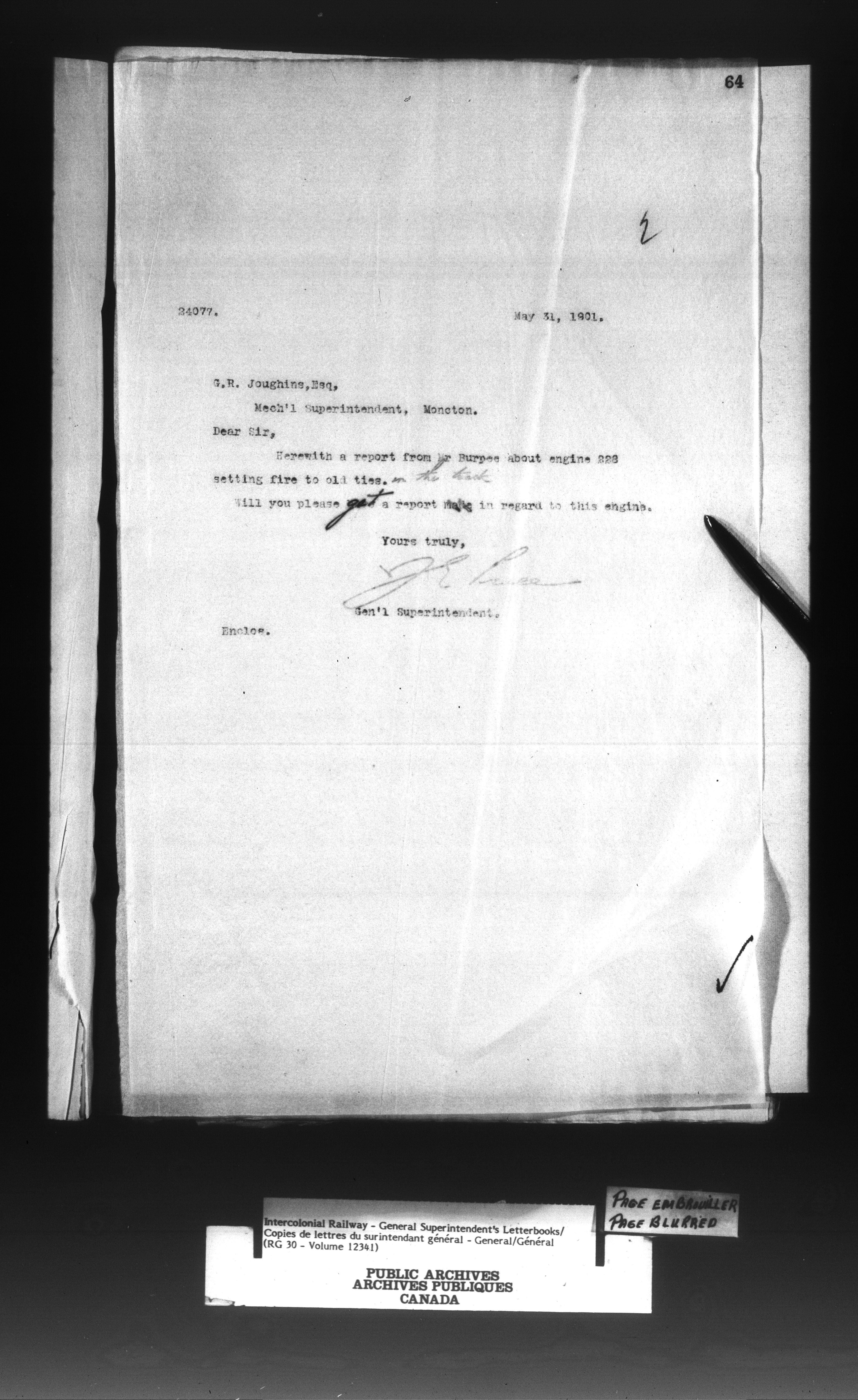 Canadian Government Railways : Office of the General Superintendent - 13033
