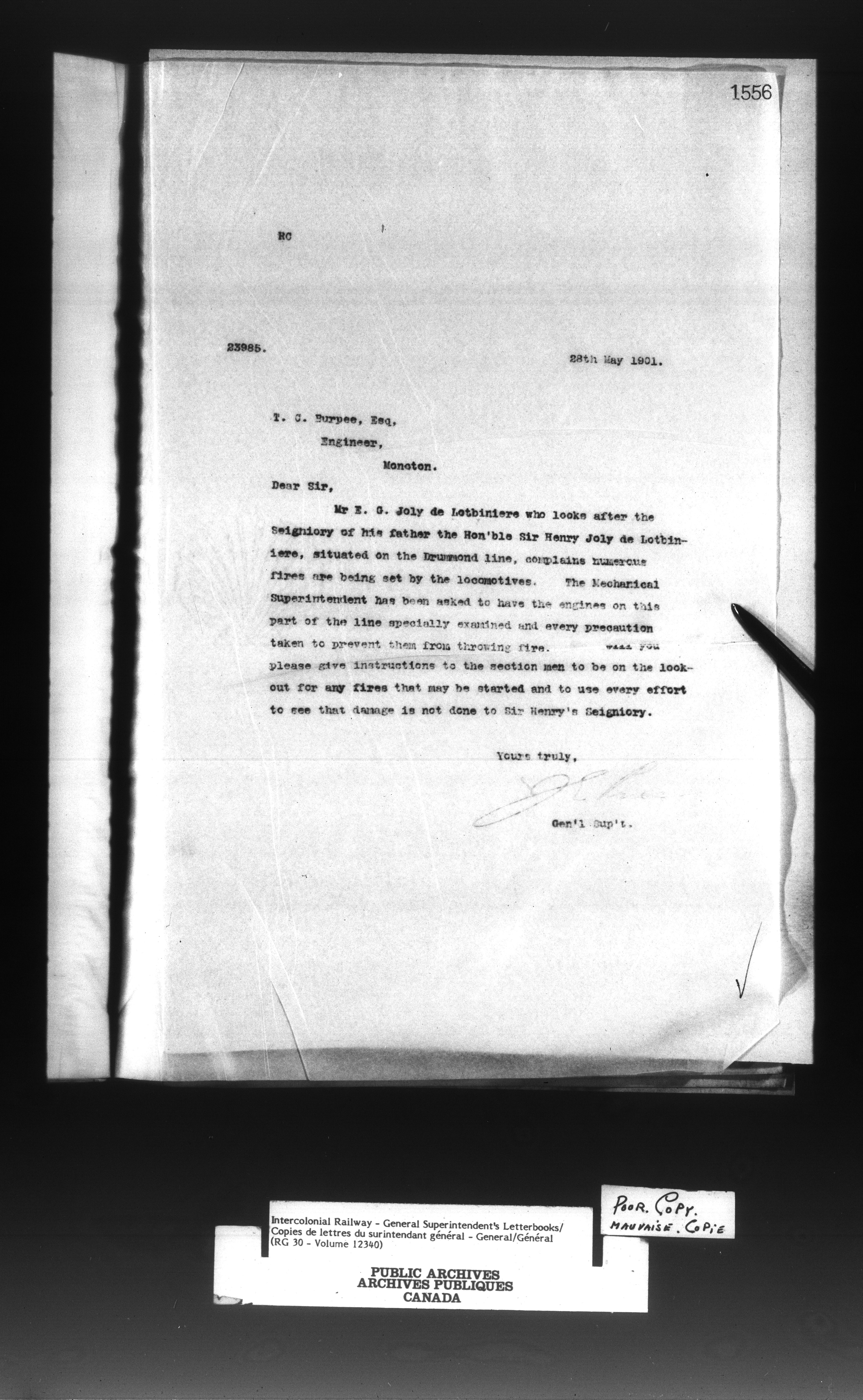 Canadian Government Railways : Office of the General Superintendent correspondence : C-13033