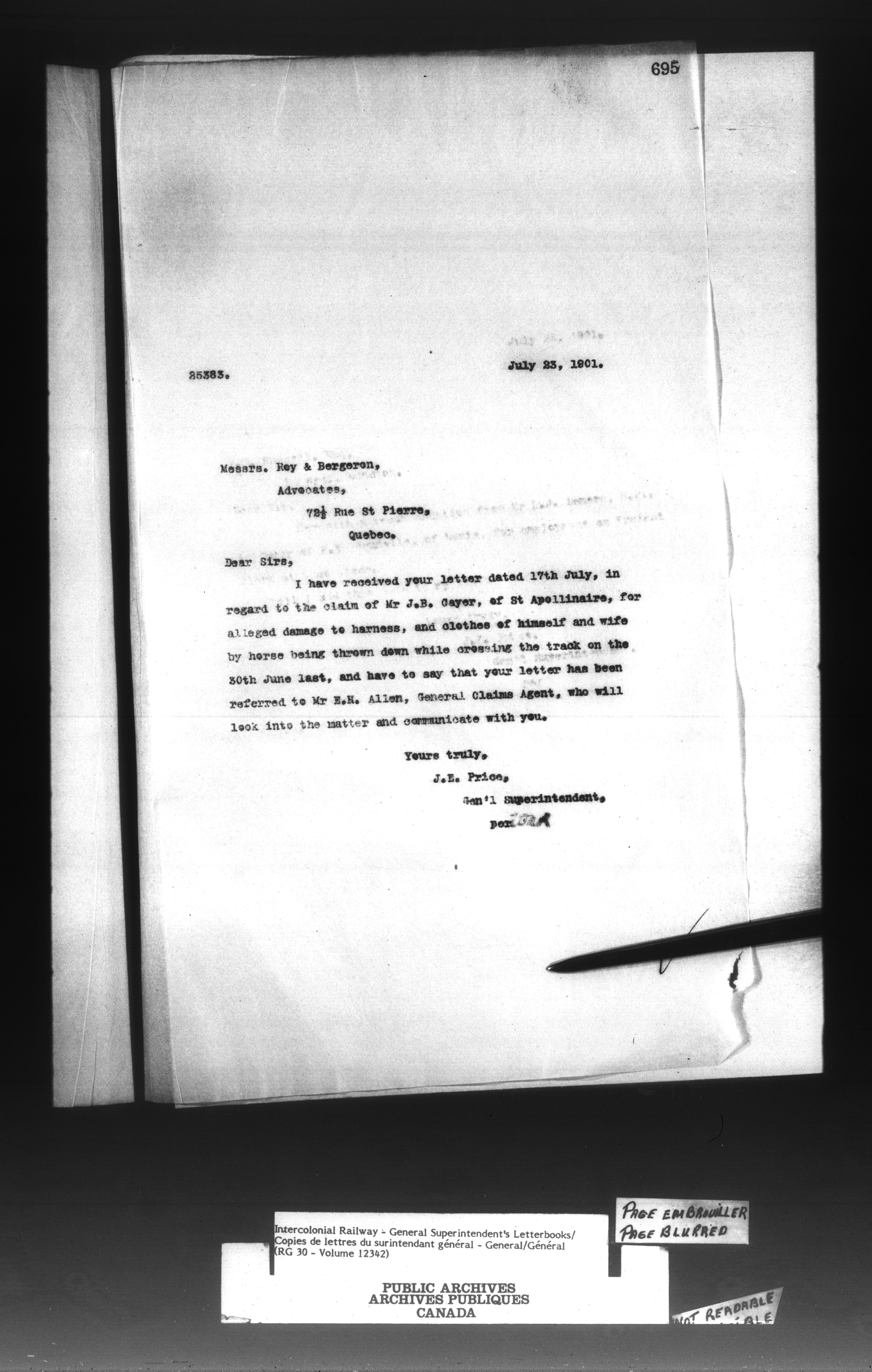 Canadian Government Railways : Office of the General Superintendent - 13034