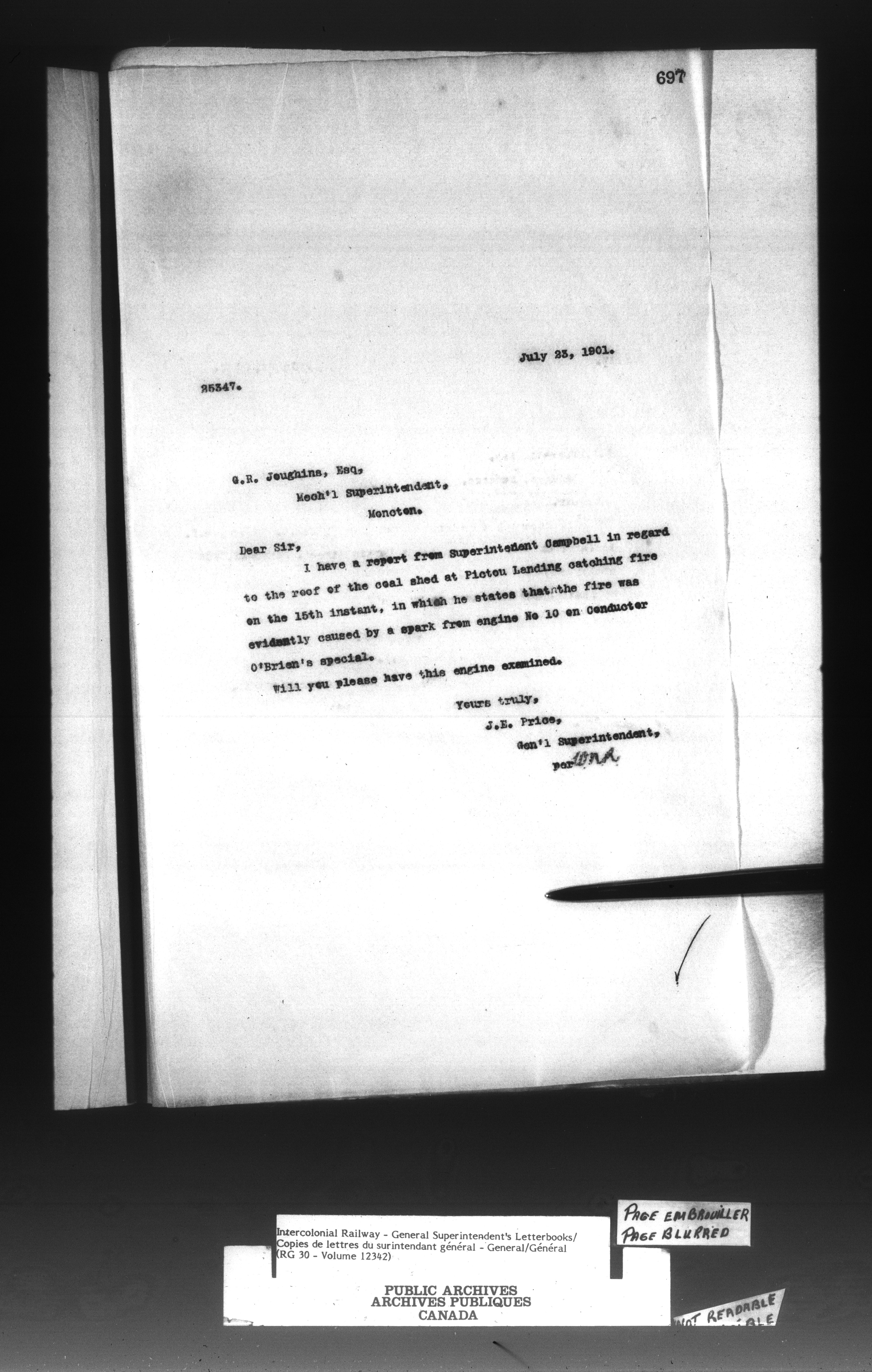 Canadian Government Railways : Office of the General Superintendent - 13034